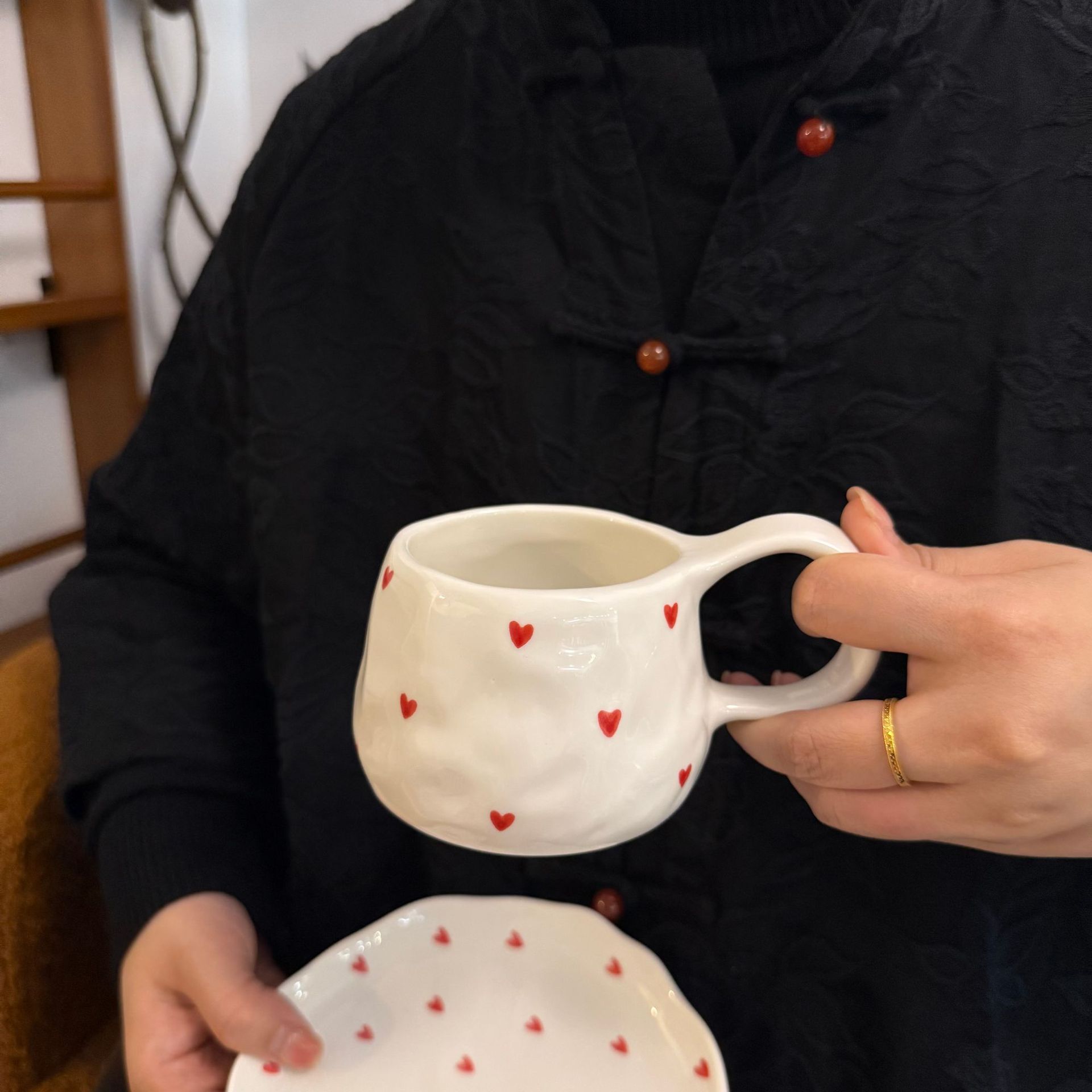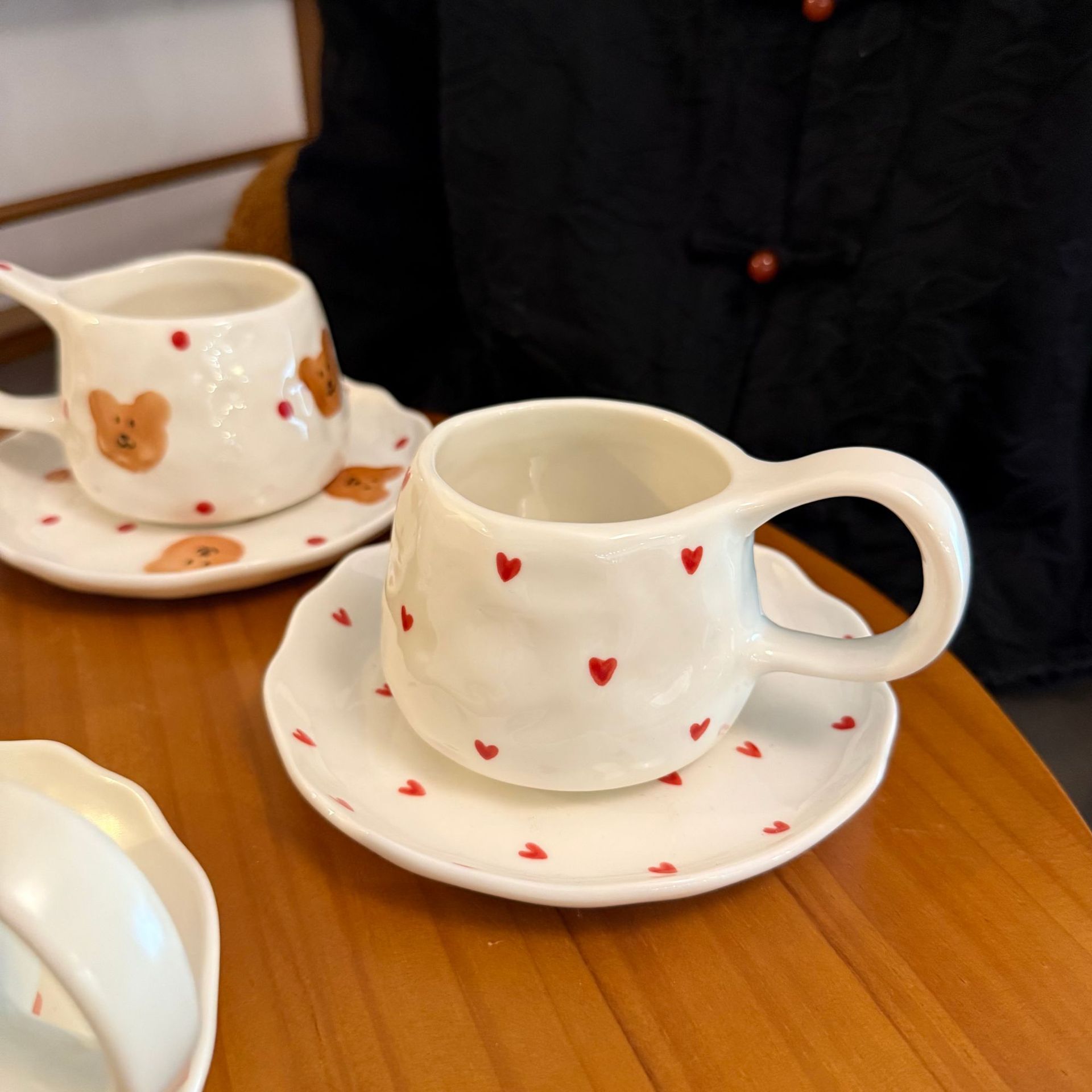 한국 스타일 Ins 스타일 손으로 그린 작은 사랑 세라믹 플레이트 손으로 반죽하는 그릇 높은 컬러 값 커피 컵과 소스 타원형 플레이트