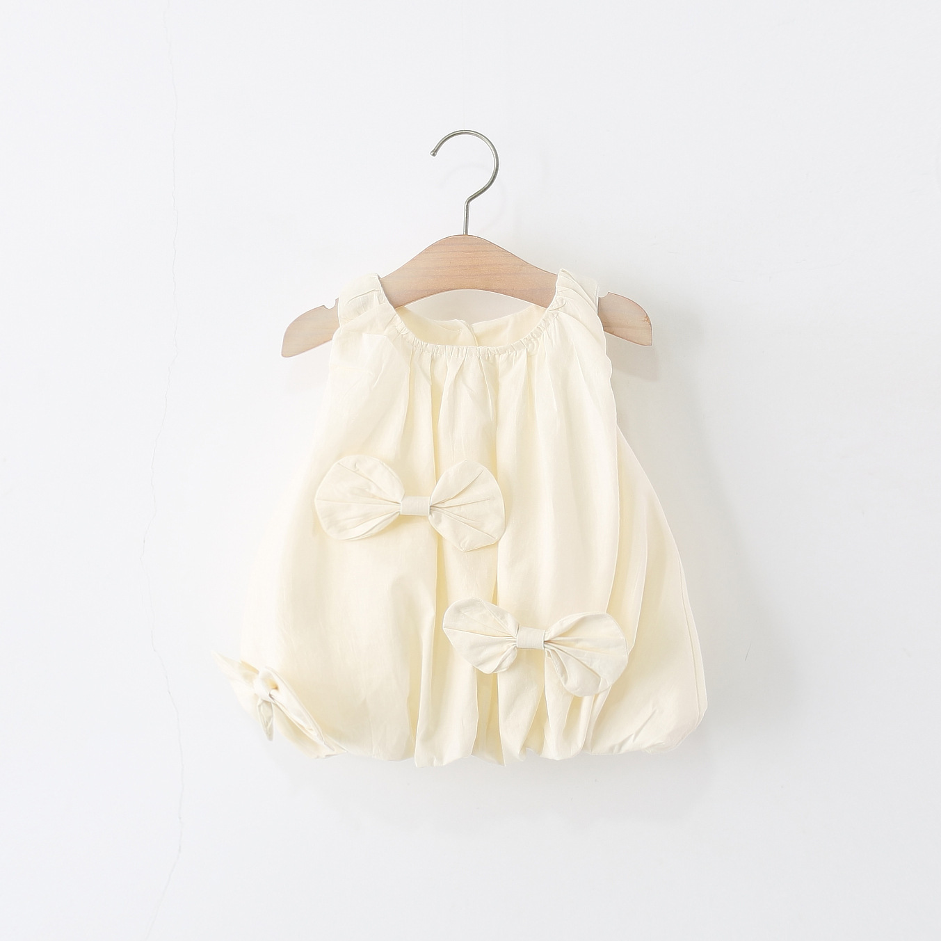 어린이 착용 소녀의 민소매 원피스 여름 어린이 아기 소녀 솔리드 컬러 활 달콤한 꽃 버드 공주 치마스토어 가기
