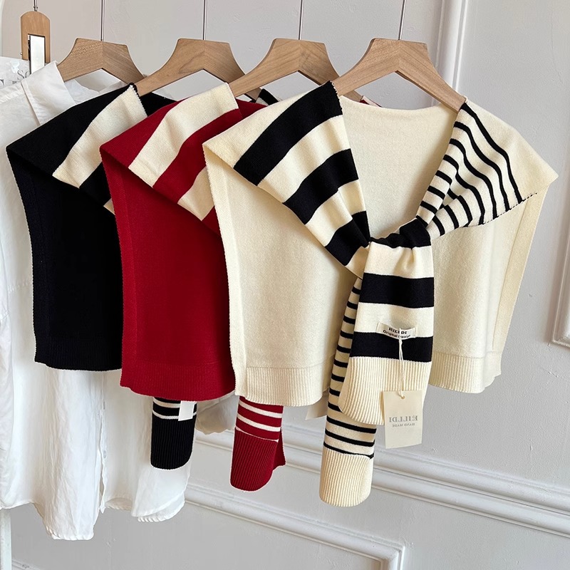 에어컨 방 니트 목도리 여성 외부 착용 봄 새로운 한국 스타일 비대칭 줄무늬 매듭 목 보호 작은 세탁기 여성 유행