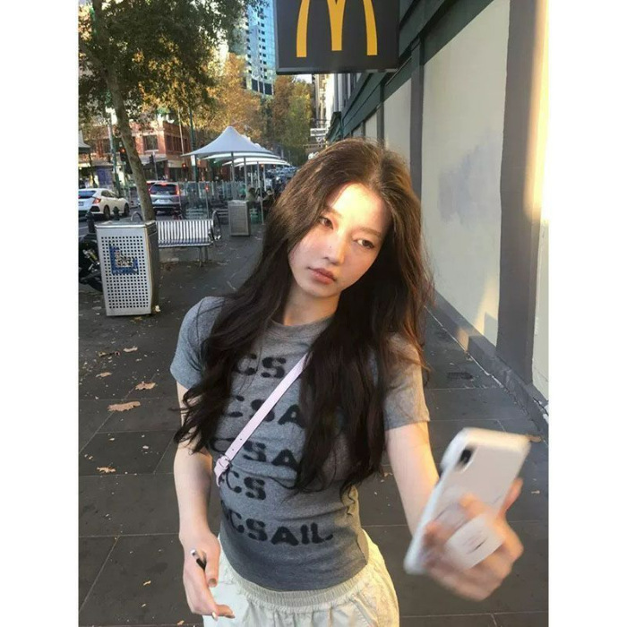 아메리칸 레트로 스파이스 걸스 숄더 반팔 티셔츠 여성 여름 2025 새로운 디자인 센스 니쉬 칙 쇼트 탑스토어 가기
