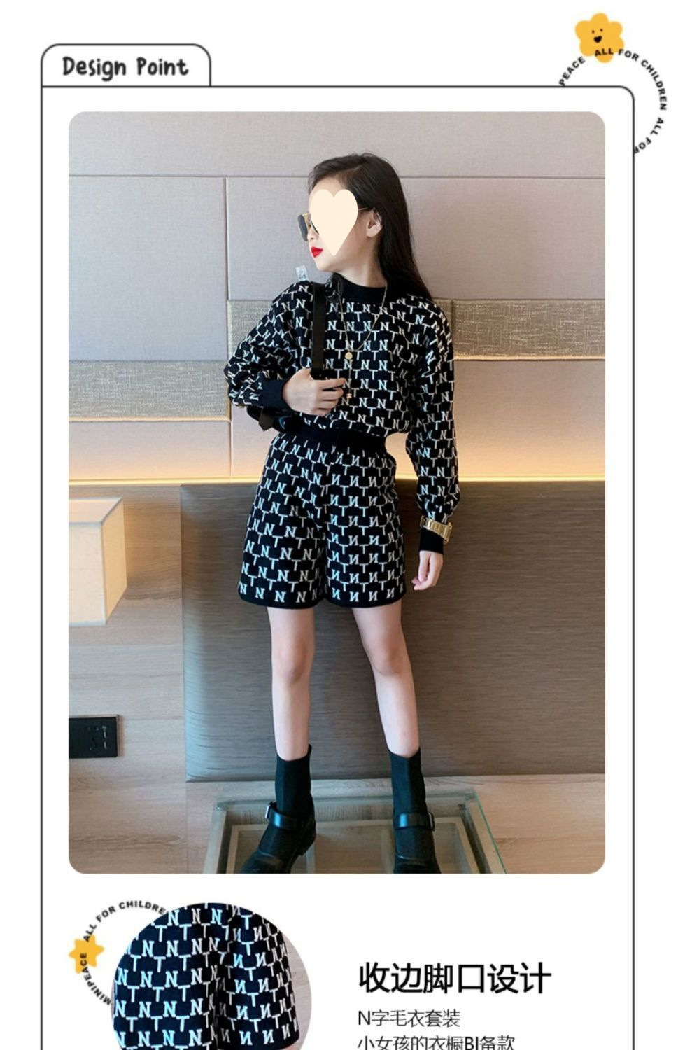 소녀 가을 원피스 세트 2024 새로운 한국 스타일 소녀 큰 어린이 인터넷 인기있는 세련된 스웨터 어린이 봄과 가을 두 조각 세트스토어 가기