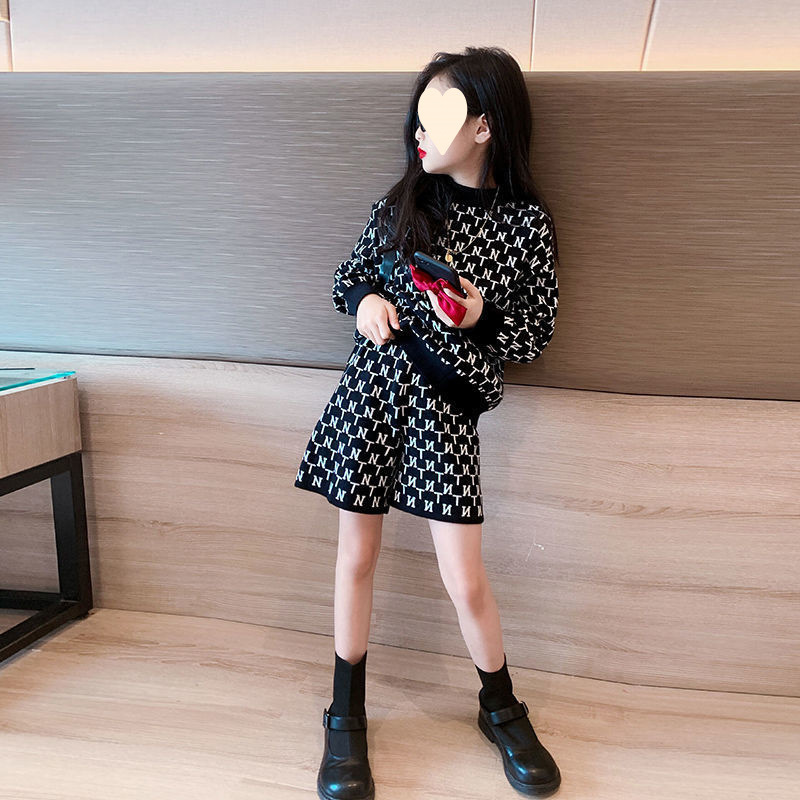 소녀 가을 원피스 세트 2024 새로운 한국 스타일 소녀 큰 어린이 인터넷 인기있는 세련된 스웨터 어린이 봄과 가을 두 조각 세트