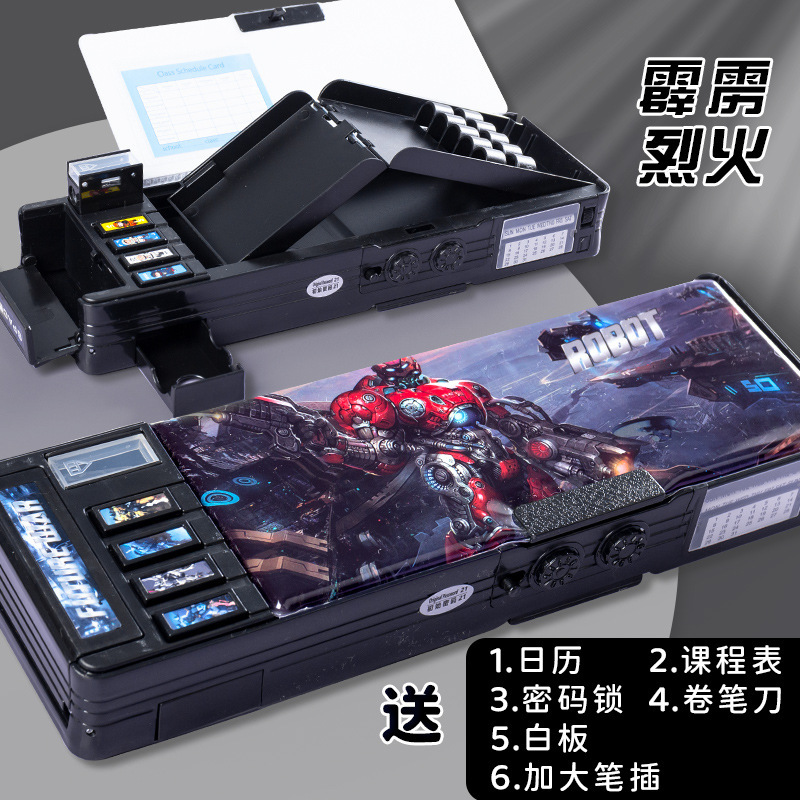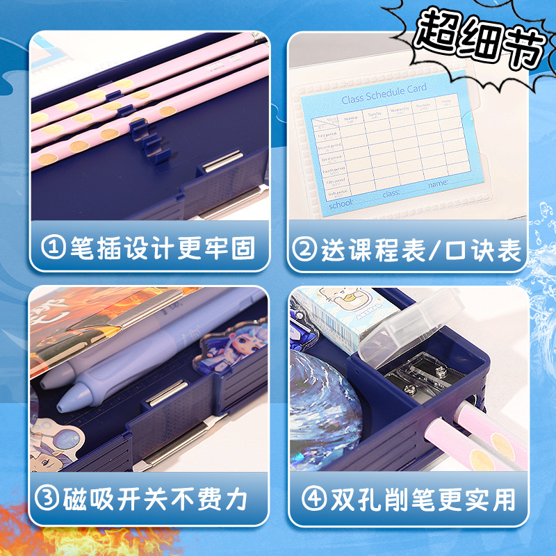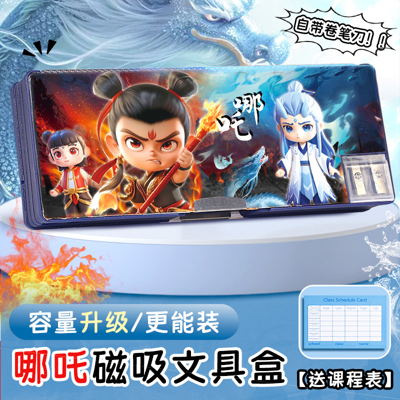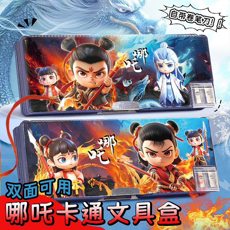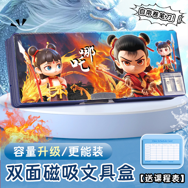 Nezha 다기능 문구 케이스 소년의 연필 케이스 양면 어린이 연필 케이스 초등학생 대용량 만화 자기 매력