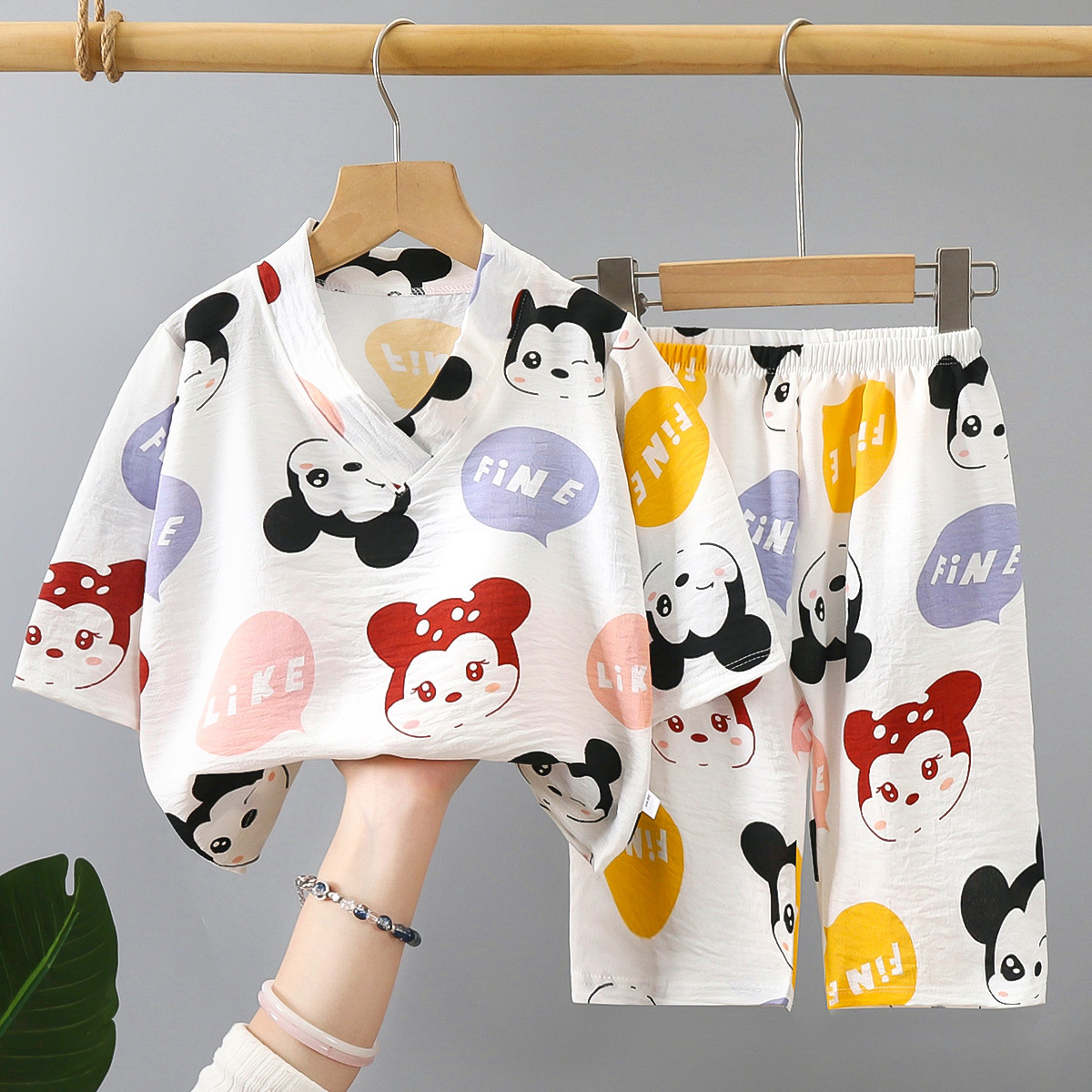 2025 년 새 어린이 홈 의류 세트 한국 인쇄 느슨한 얇은 자른 바지 투피스 잠옷 여름