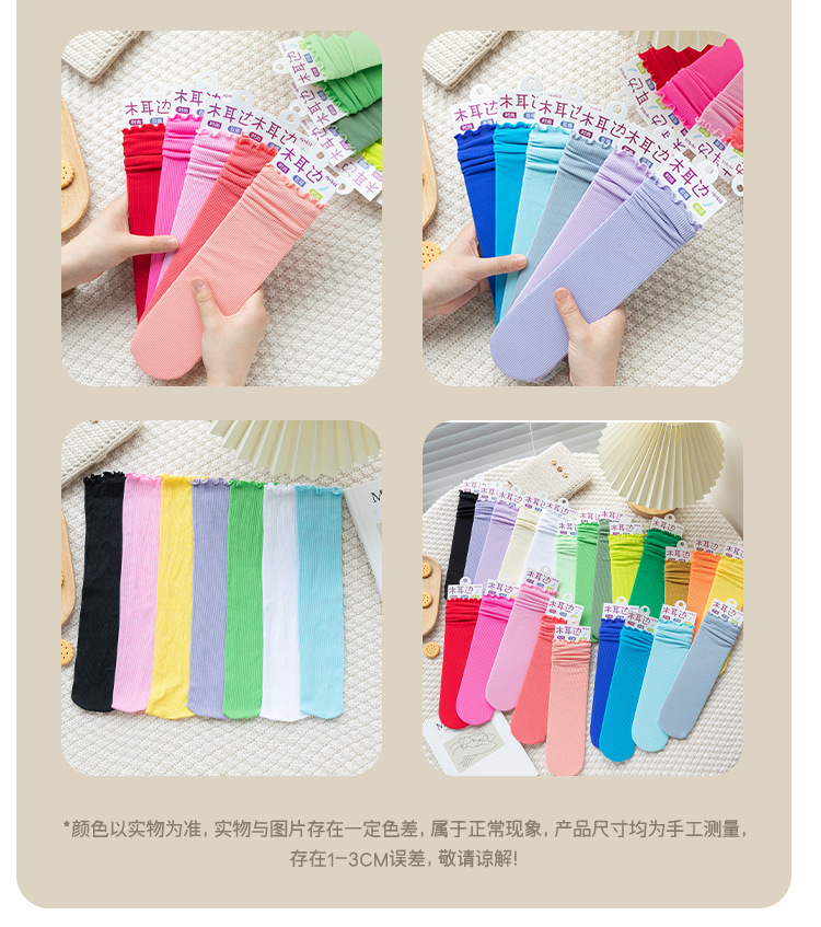 어린이 얼음 양말 컬러 벨벳 코일 양말 크기 어린이 밝은 색상 모든 일치 수직 스트립 귀 가장자리 여름 얇은 양말