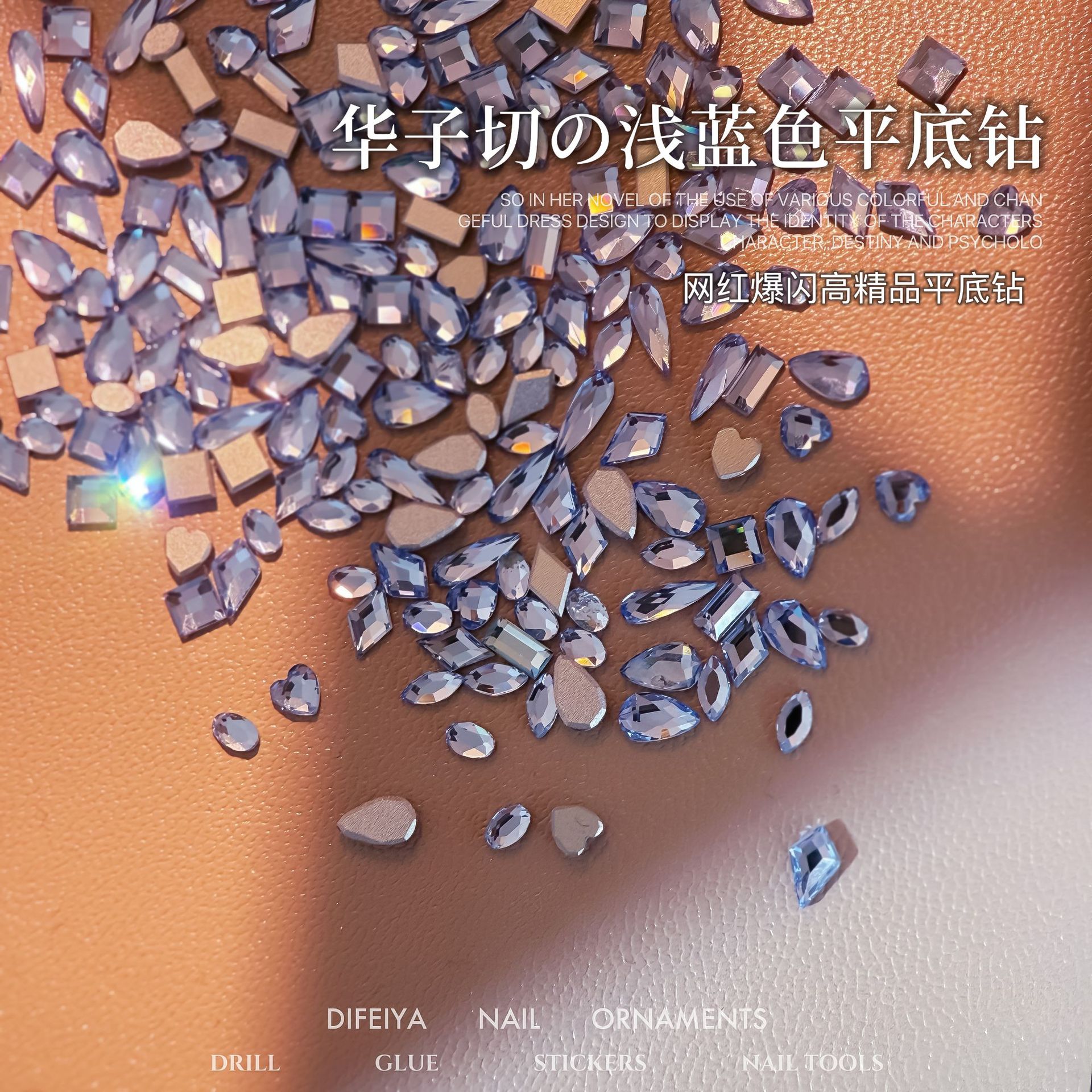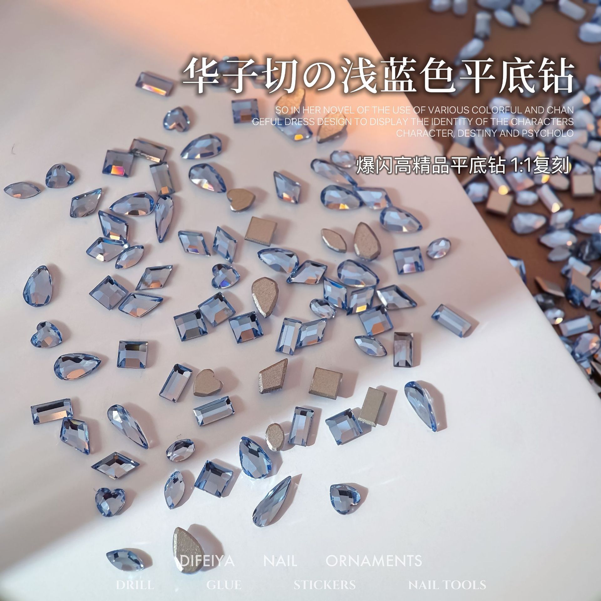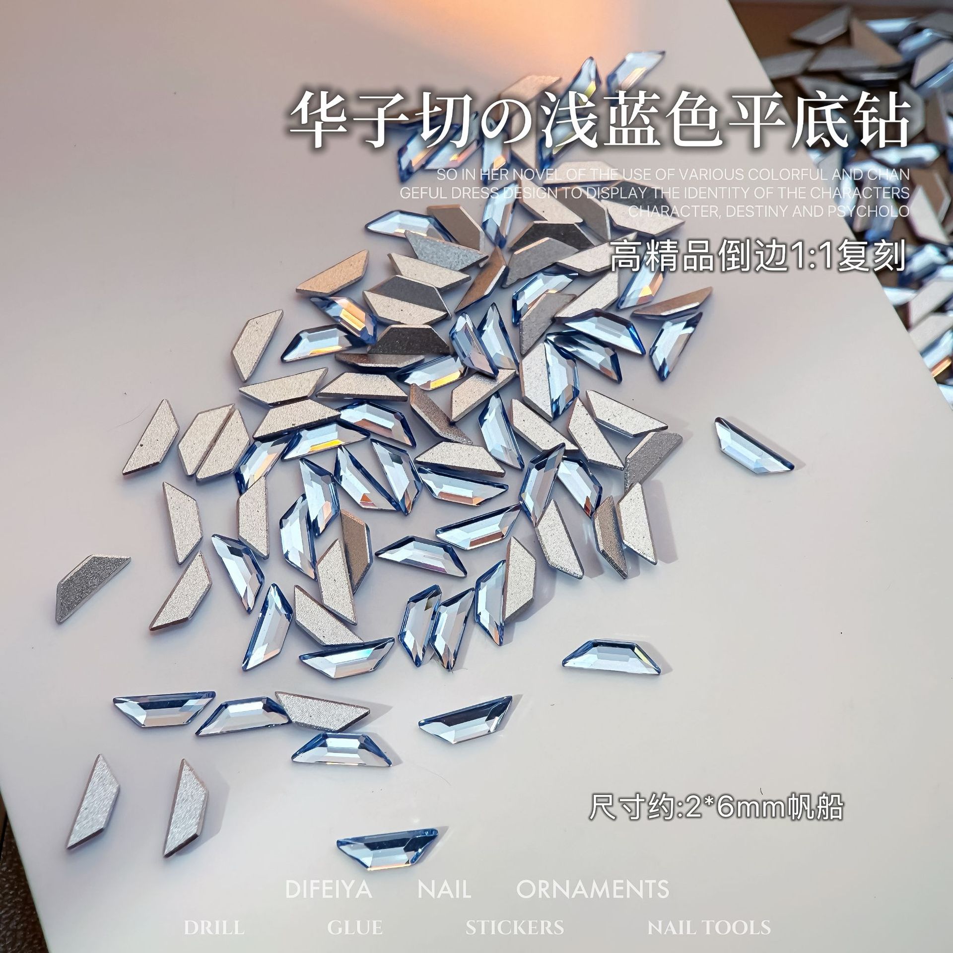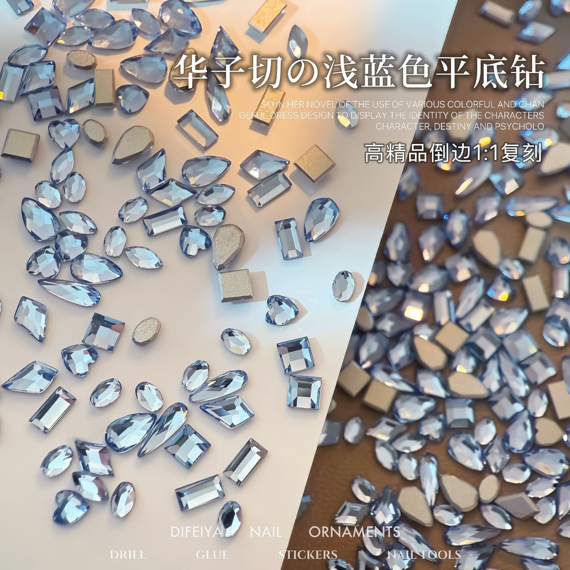 라이트 블루 Hazi 컷 K9 반전 플랫 하단 다이아몬드 네일 아트 쥬얼리 플래시 미니 스몰 사이즈 아이스 블루 가이드 에지 네일 드릴