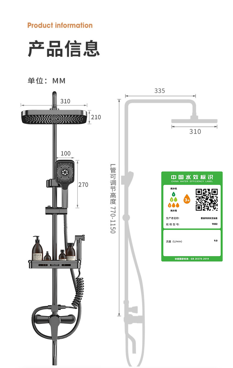• [업그레이드 모델] 건그레이 4단 샤워세트◆13inch개의 대형 스크린 사각 천장 스프레이 장착