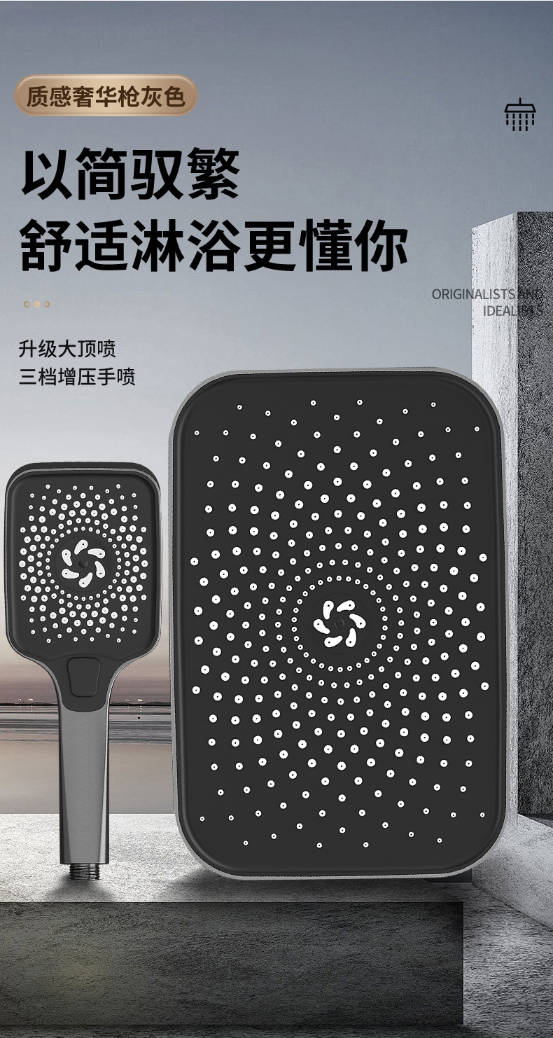 • [일반모델] 건그레이 3단 샤워세트◆13inch개의 대형 스크린 사각 천장 스프레이 장착