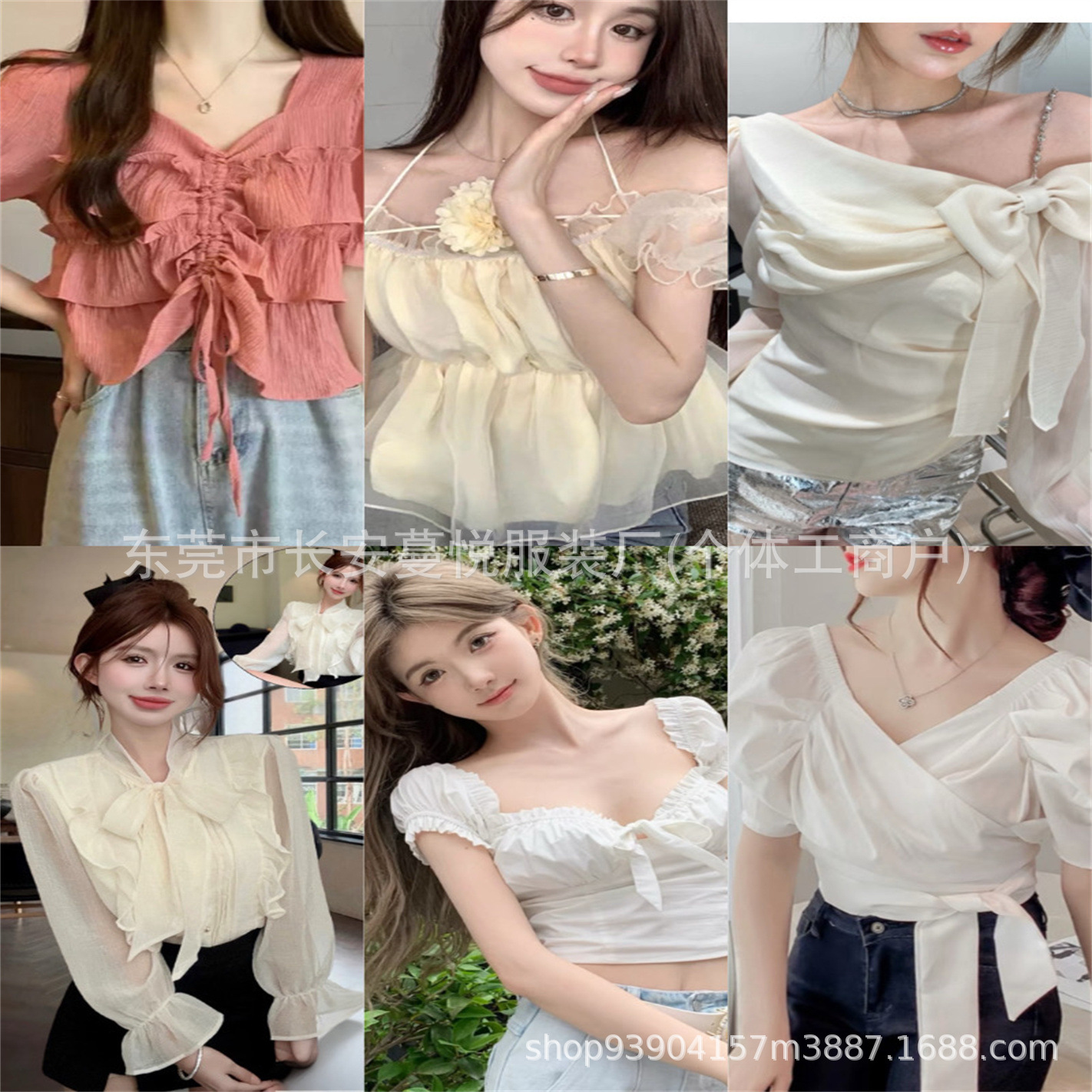 시폰 셔츠 여성 2024 년 여름 새로운 프랑스 틈새 디자인 센스 짧은 소매 뜨거운 소녀 꽃 셔츠 쉬폰 최고 여성스토어 가기