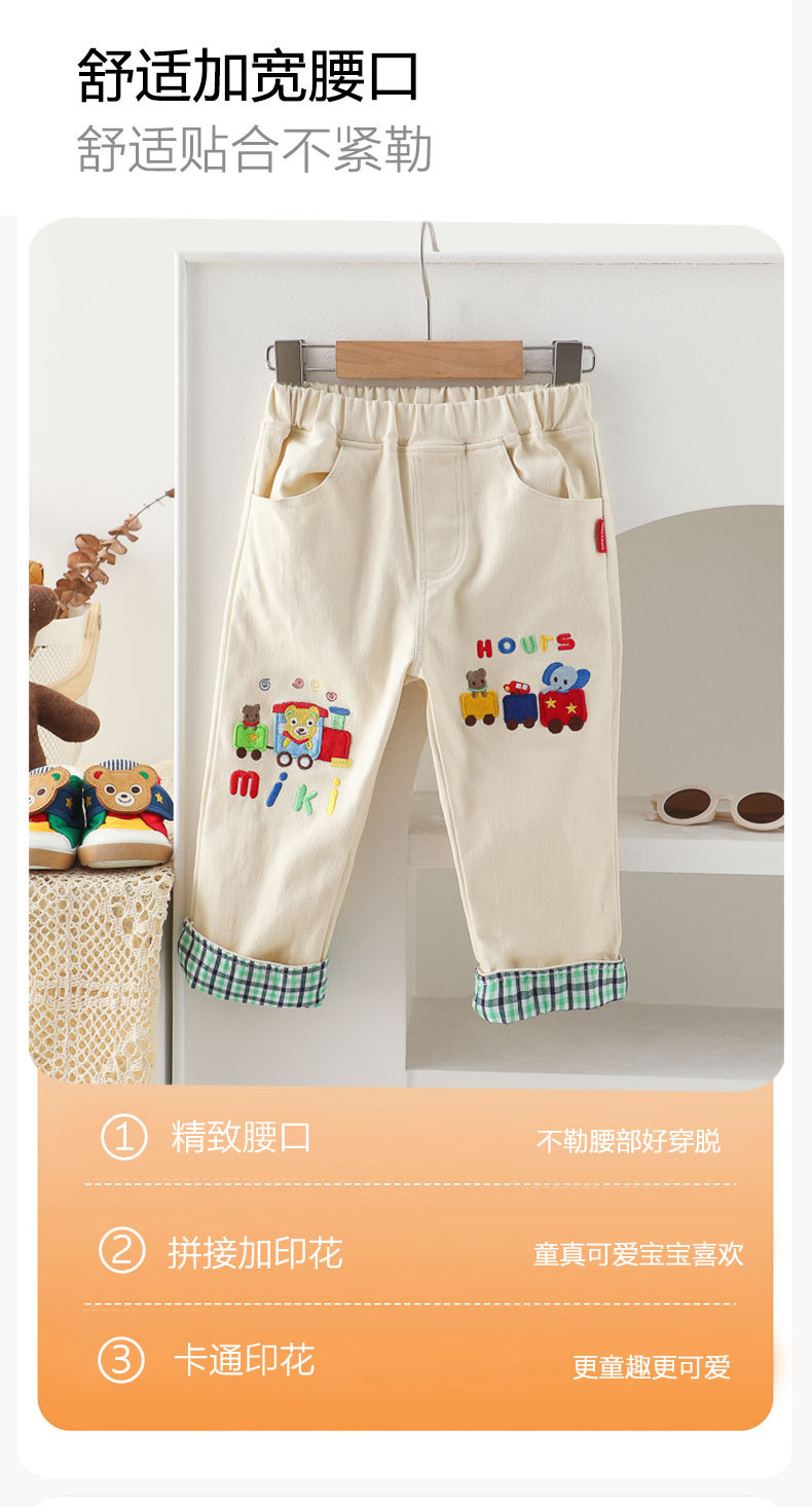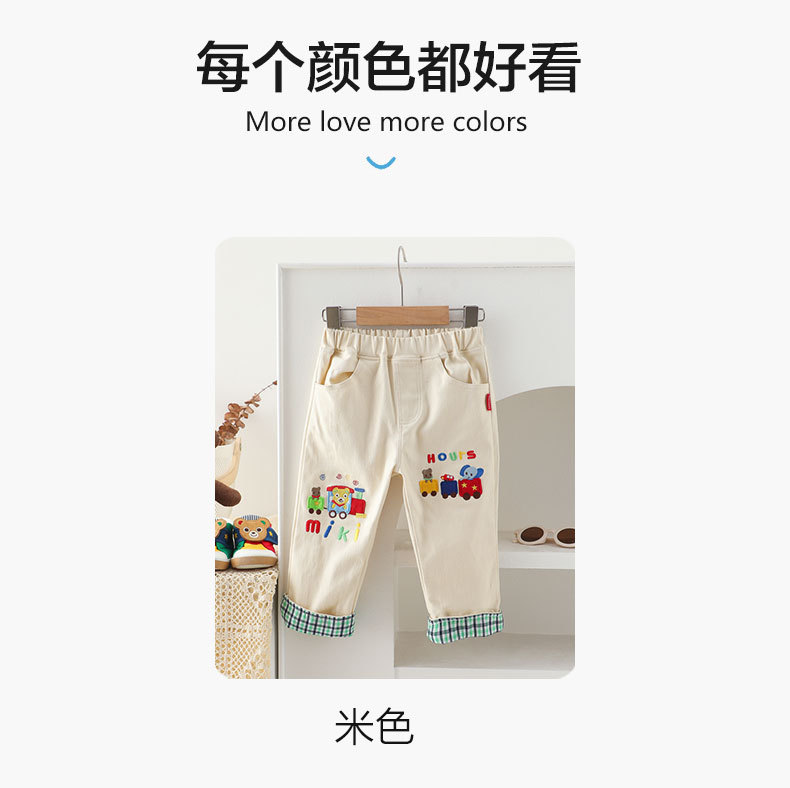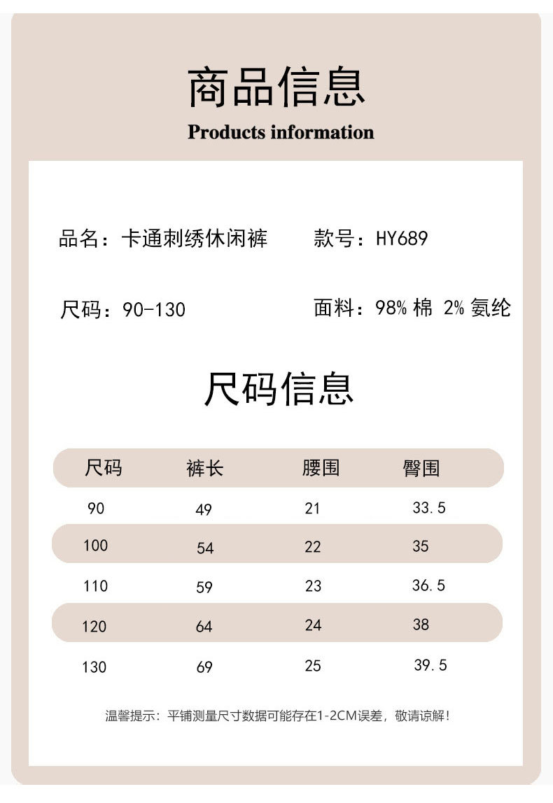 일본식 미키 아동 캐주얼 바지 봄 여름 남녀 아동용 면바지 트렌디한 아기 만화 자수 바지 유아용스토어 가기