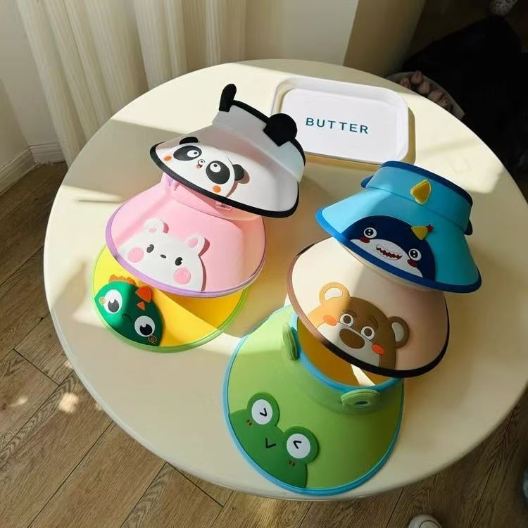 새로운 어린이 선 스크린 모자 걸스 빅 브림 빈 탑 모자 안티 UV 비치 태양 모자 작은 동물 태양 모자