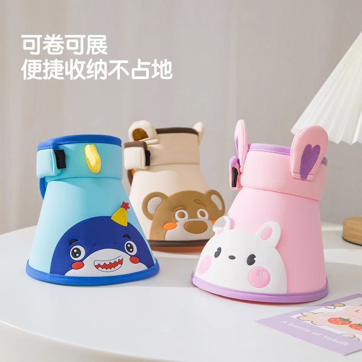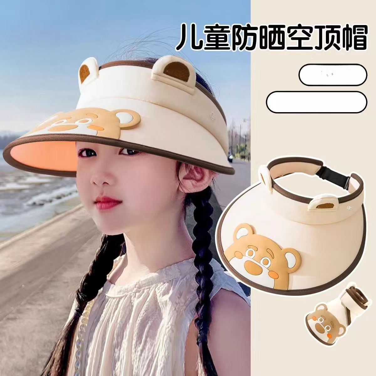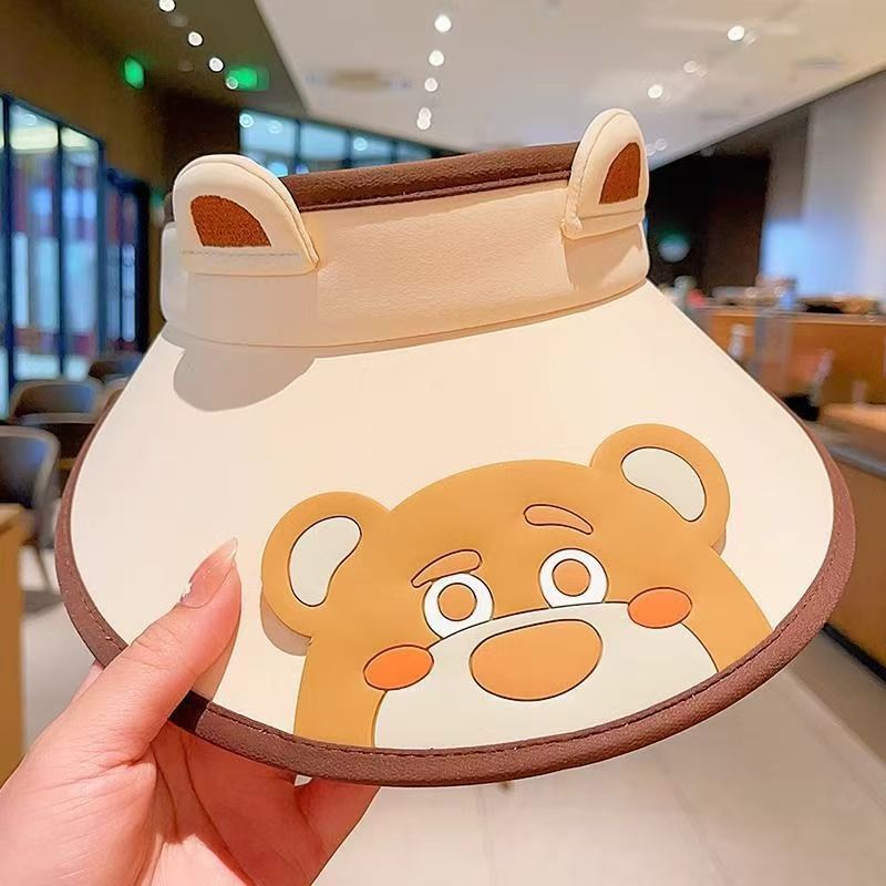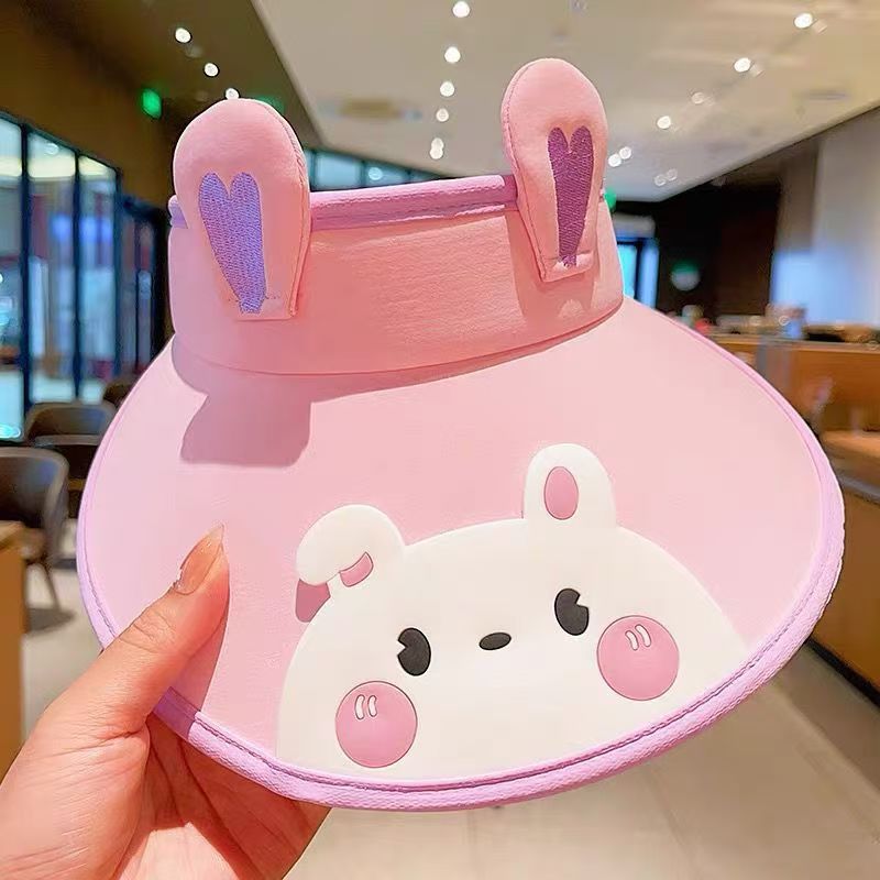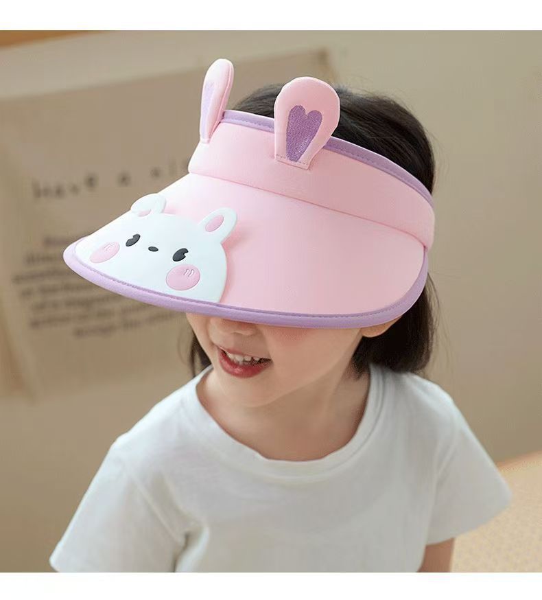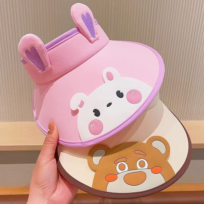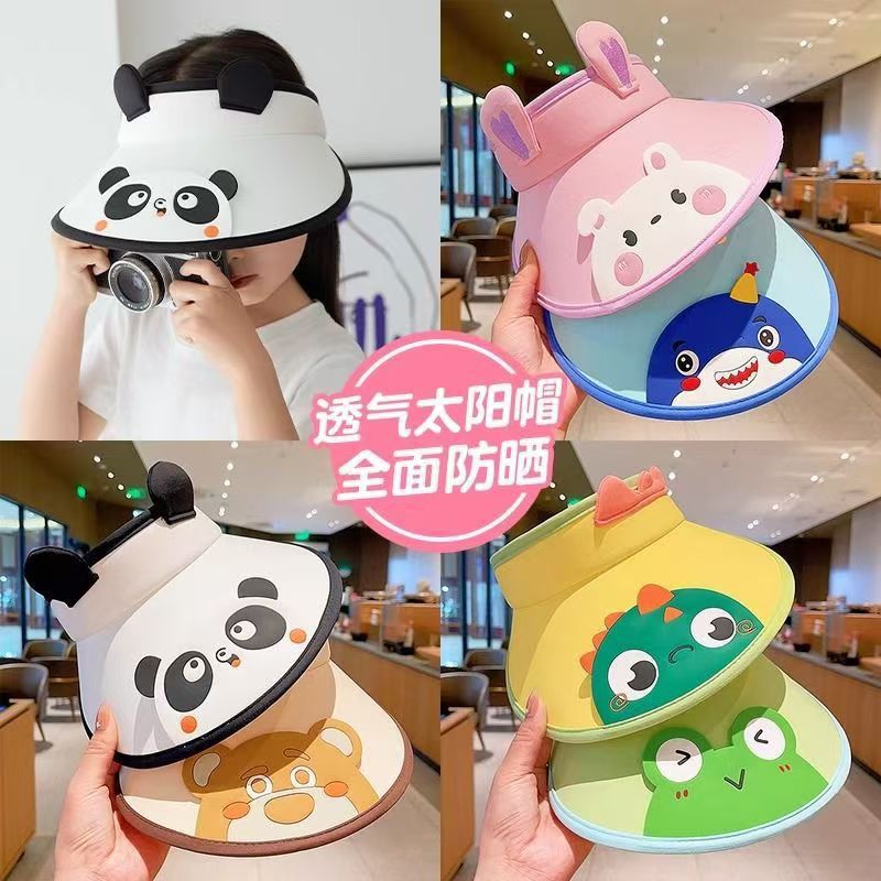 새로운 어린이 선 스크린 모자 걸스 빅 브림 빈 탑 모자 안티 UV 비치 태양 모자 작은 동물 태양 모자스토어 가기