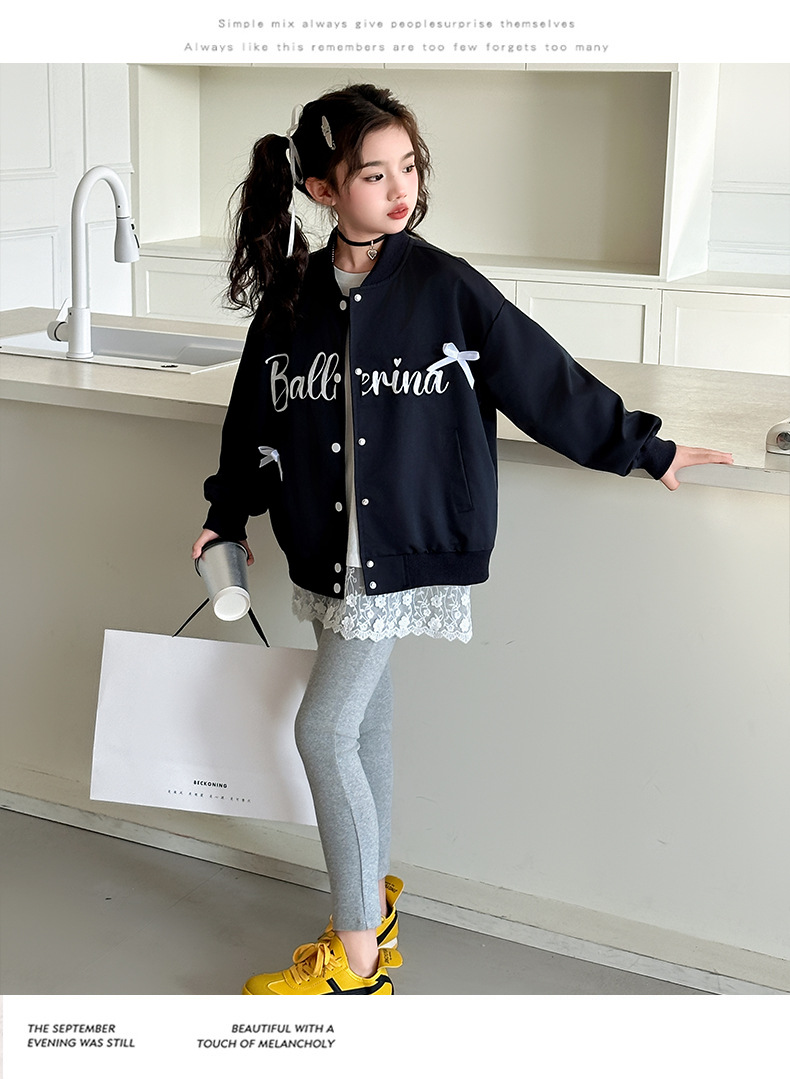 어린이 코트 봄 새 여아 활 편지 야구 세트 한국식 서양식 탑 트렌디