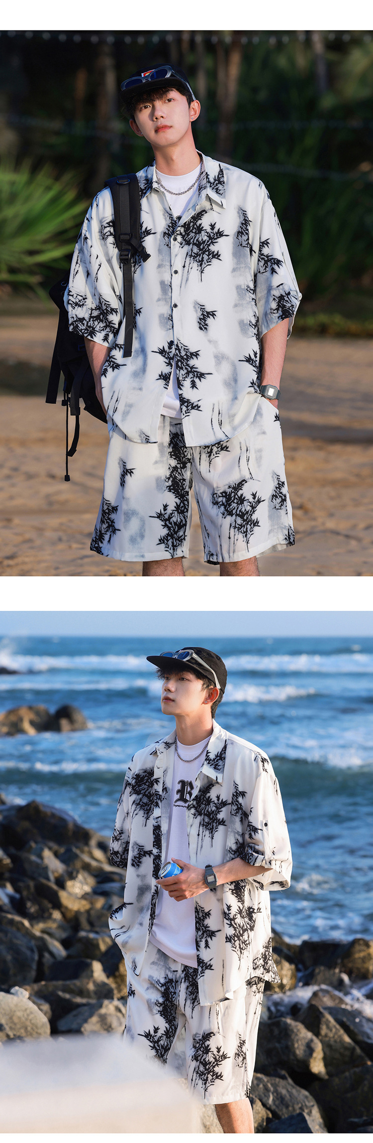 아이스 실크 타이 염료 스포츠 세트 남자 여름 트렌디 브랜드 새로운 스타일 잘 생긴 느슨한 반팔 비치 반바지 캐주얼 투피스 세트스토어 가기