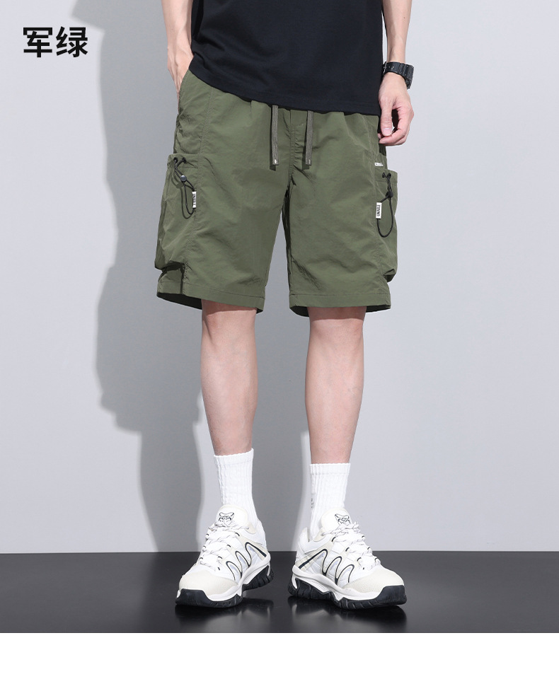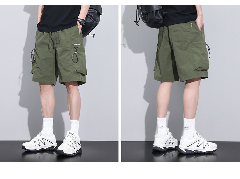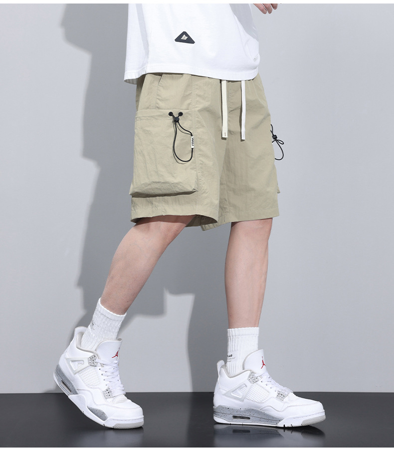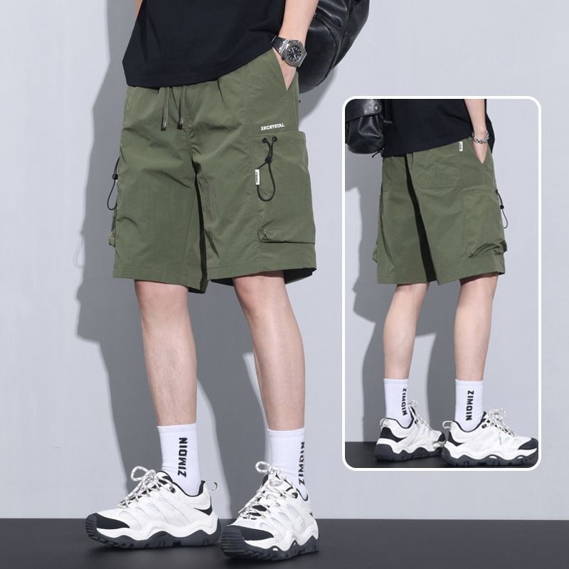 6 개의 포켓 캐주얼 툴링 반바지 2025 여름 새로운 신속 건조 느슨한 사이드 포켓 중간 길이의 트렌디 한 절반 길이 바지