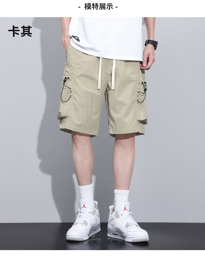 6 개의 포켓 캐주얼 툴링 반바지 2025 여름 새로운 신속 건조 느슨한 사이드 포켓 중간 길이의 트렌디 한 절반 길이 바지스토어 가기