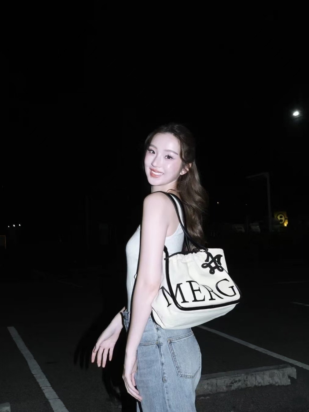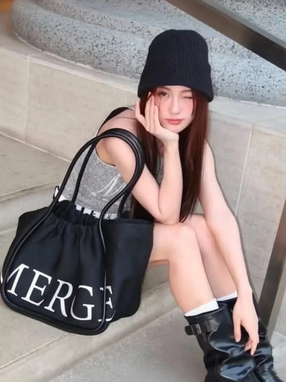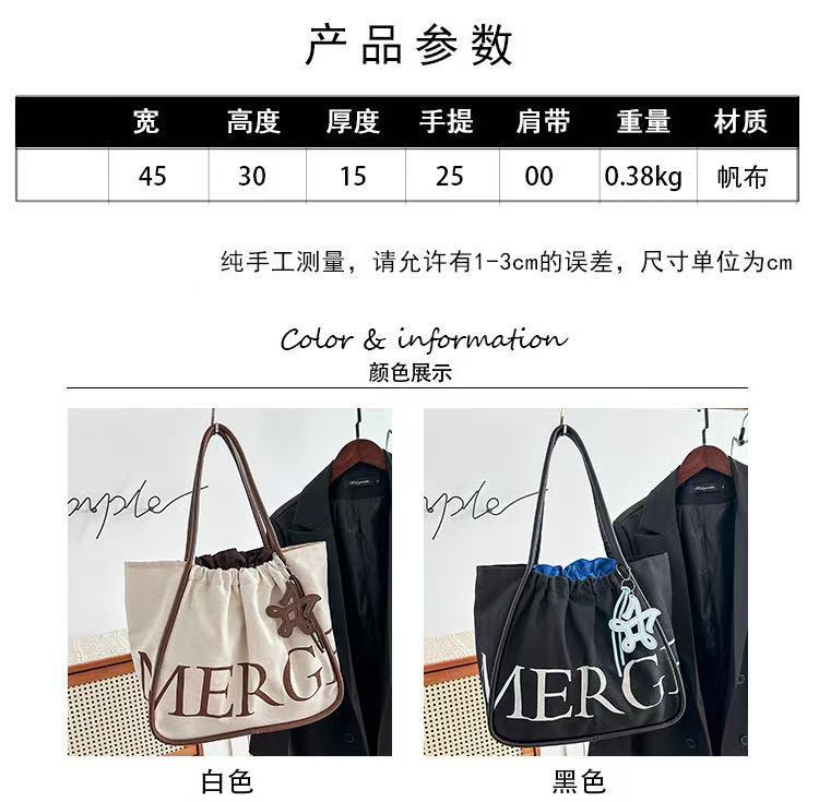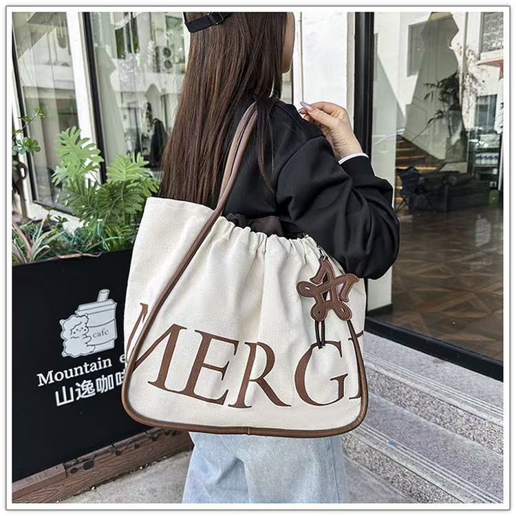 태국 MERGE 토트 백 대용량 캐주얼 여성 가방 게으른 스타일 어깨 헝겊 가방 통근 올 매치 대형 핸드백스토어 가기