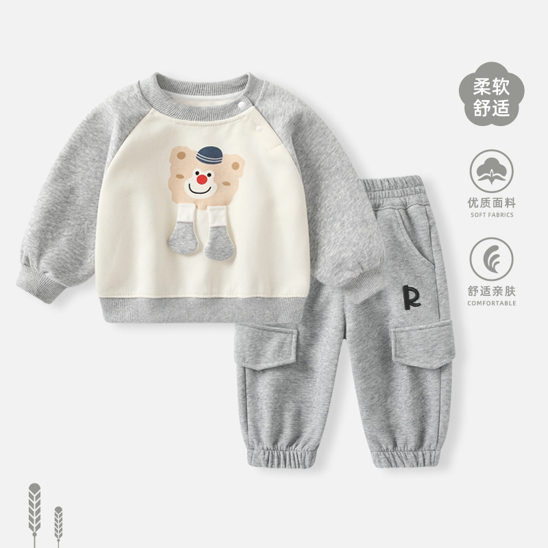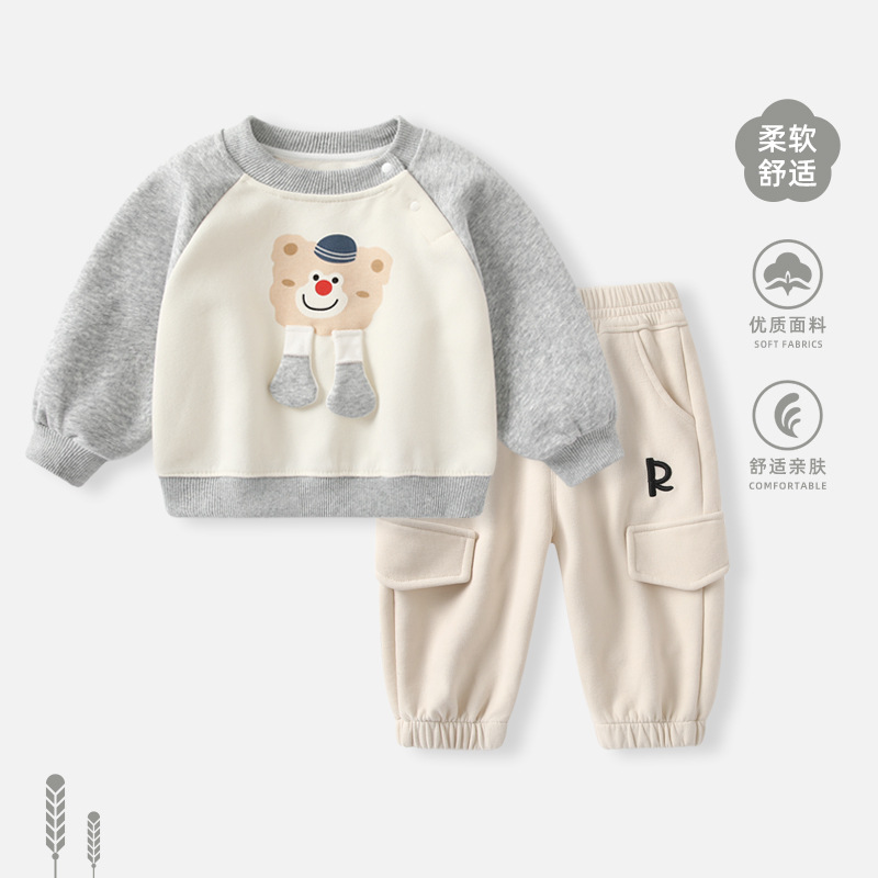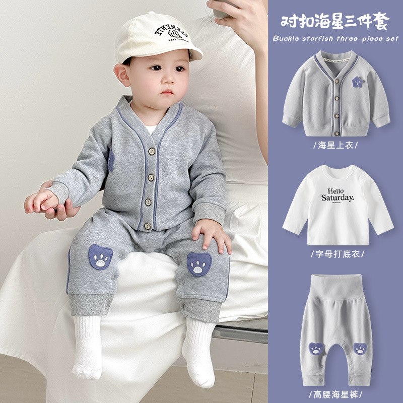 아기 세트 2025 새로운 봄 남성 아기 분할 3 피스 어린이 나들이복 땀 바지 야구 세트