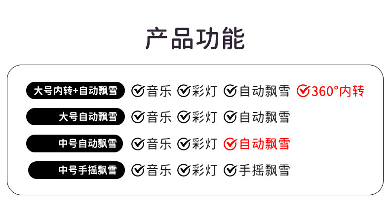 • 대형 자동 눈 내리기 + 자동 회전 + 조명 + 음악