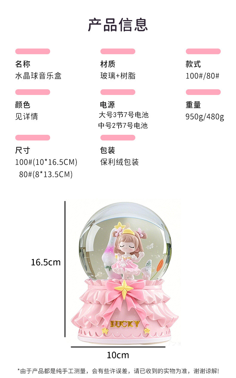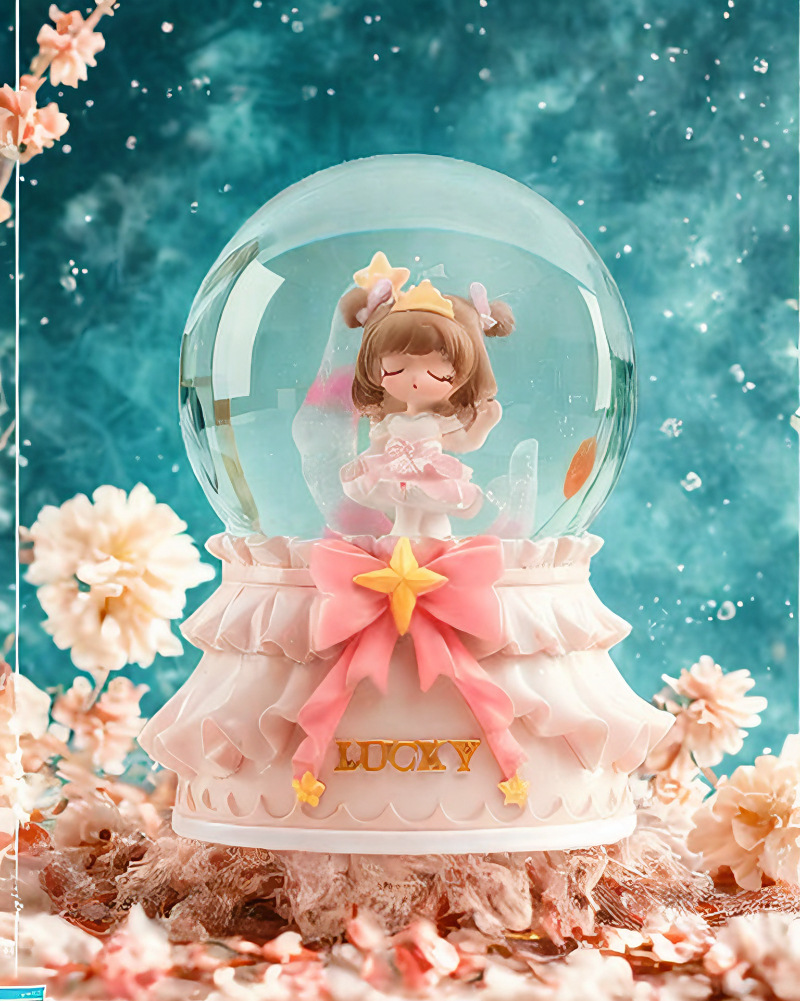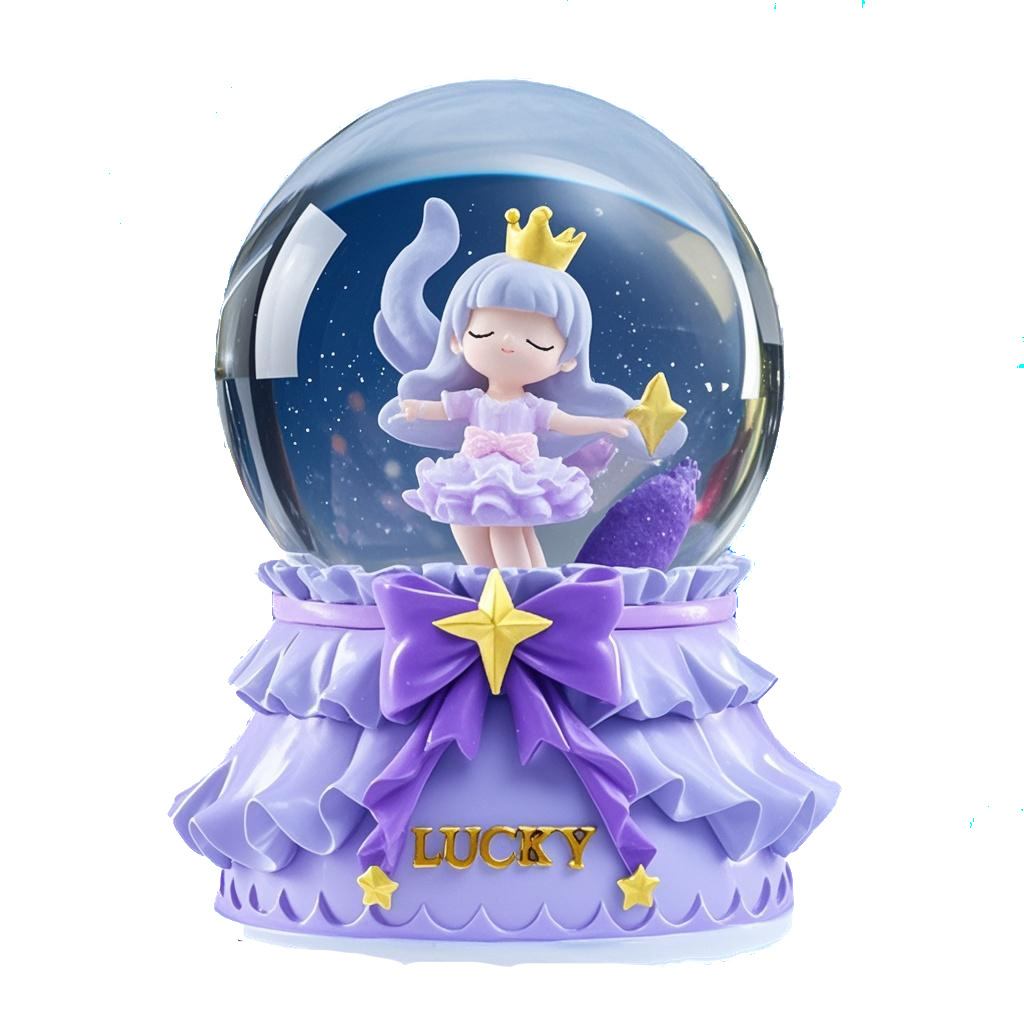 모카 소녀 크리스탈 볼 뮤직 박스 회전 눈 빛나는 침실 분위기 장식 장식품 학생 생일 선물