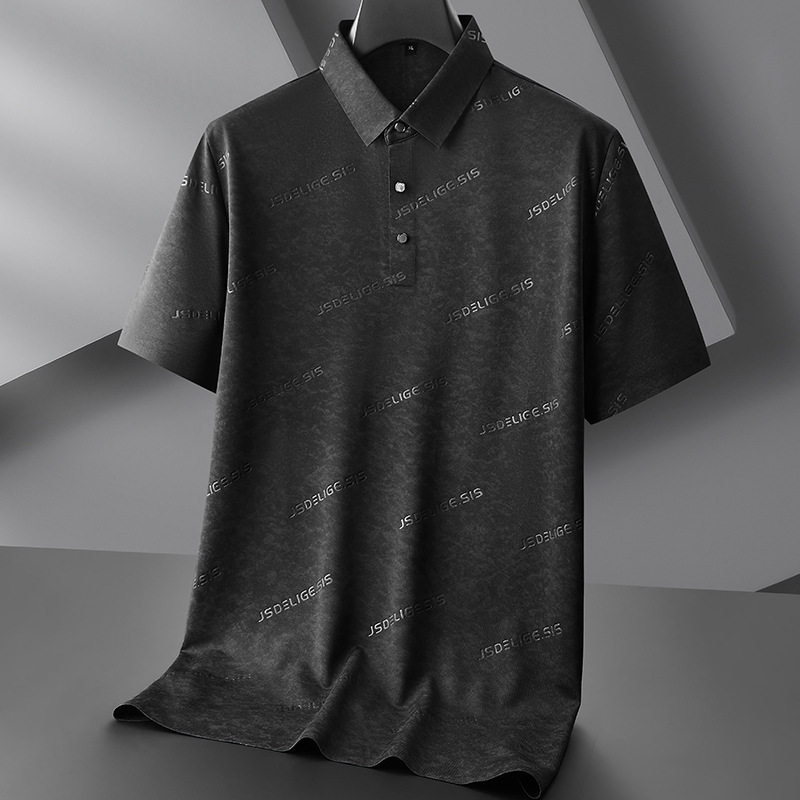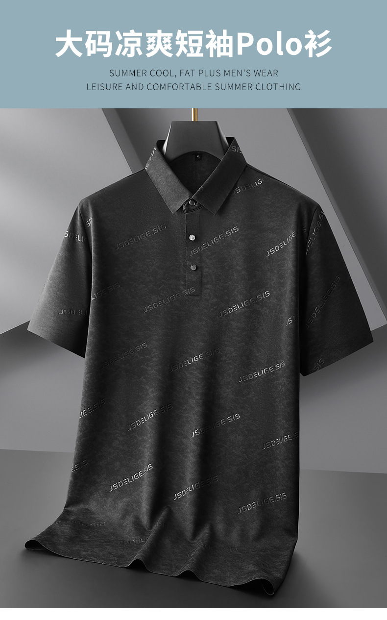 뚱뚱한 형제 2025 자카드 반팔 티셔츠 남자 플러스 사이즈 패션 옷깃 탑 여름 새로운 뚱뚱한 남자 느슨한 빠른 건조