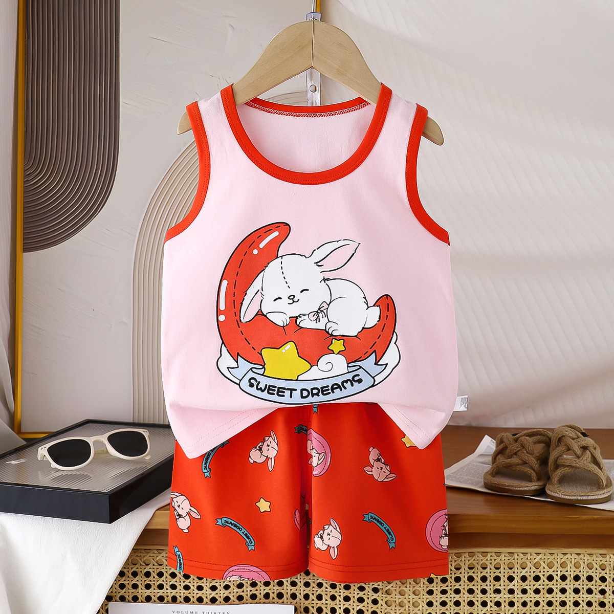 어린이 조끼 세트 면화 소녀 여름 한국 아동복 새로운 2025 여름 소년 투피스 도매스토어 가기