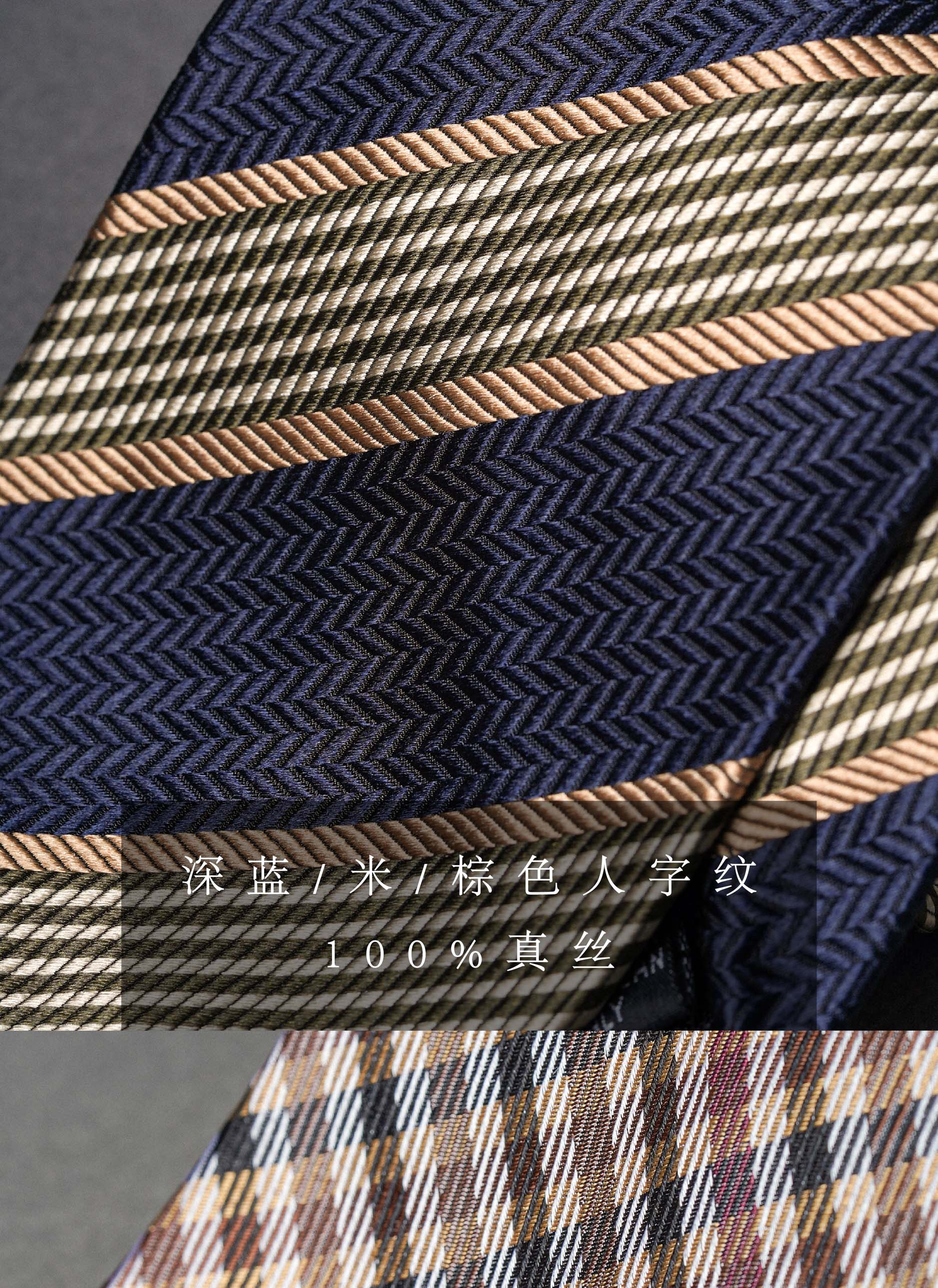 • <<다크블루/베이지/브라운 - 헤링본 패턴 - 실크 155cm>>