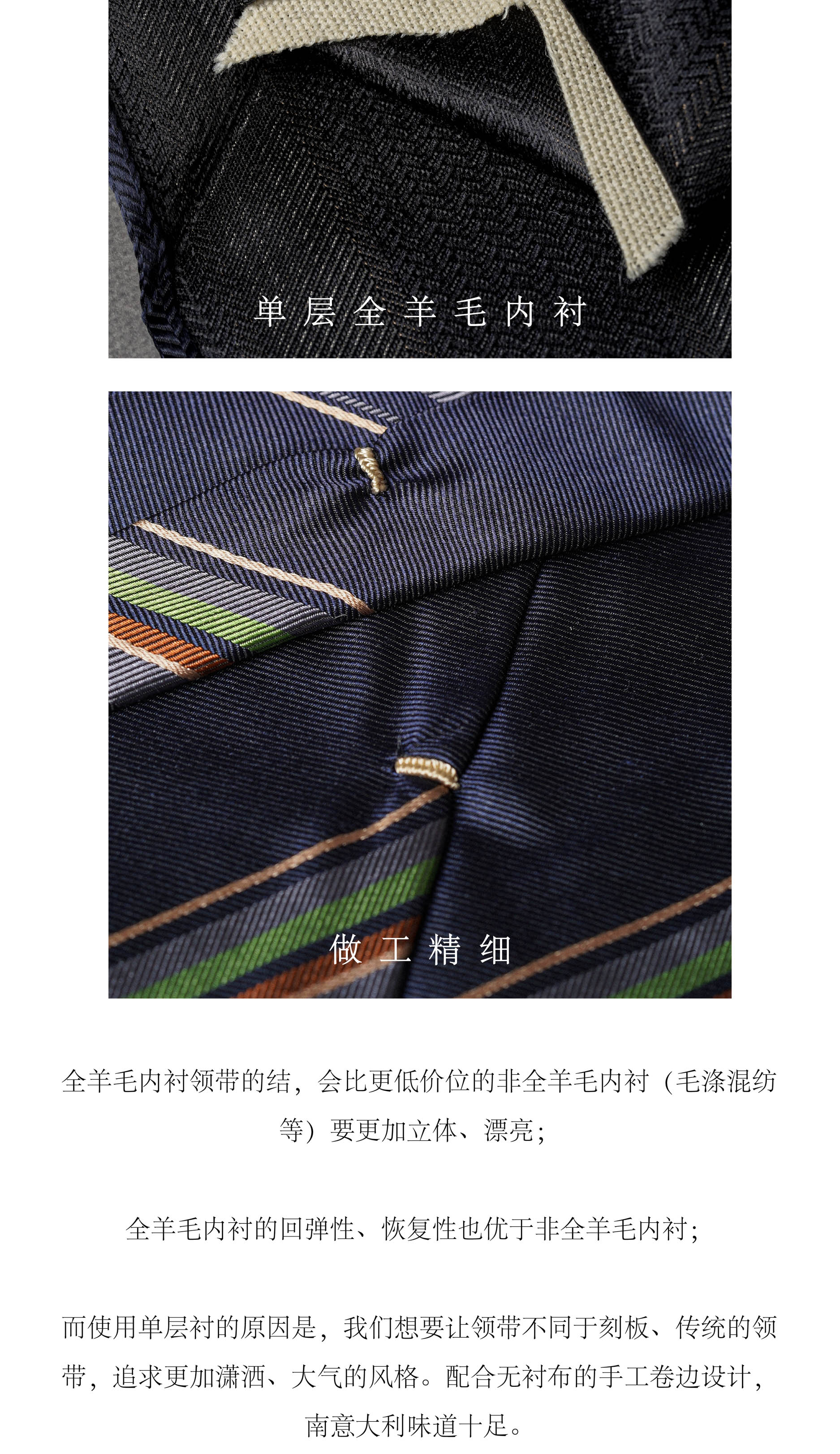 실크 3 배 넥타이 ENP 이탈리아 순수 울 라이닝 핸드 롤