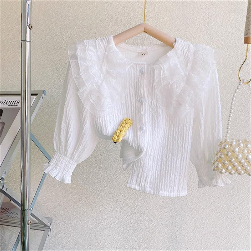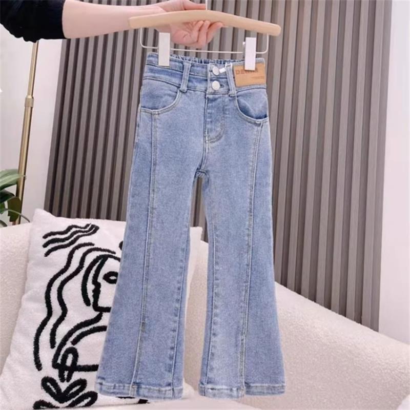 한국 스타일 서양식 2024 소녀 샤넬 스타일 재킷 화이트 셔츠 데님 플라 바지 3 조각 세트 봄과 가을 새 세트