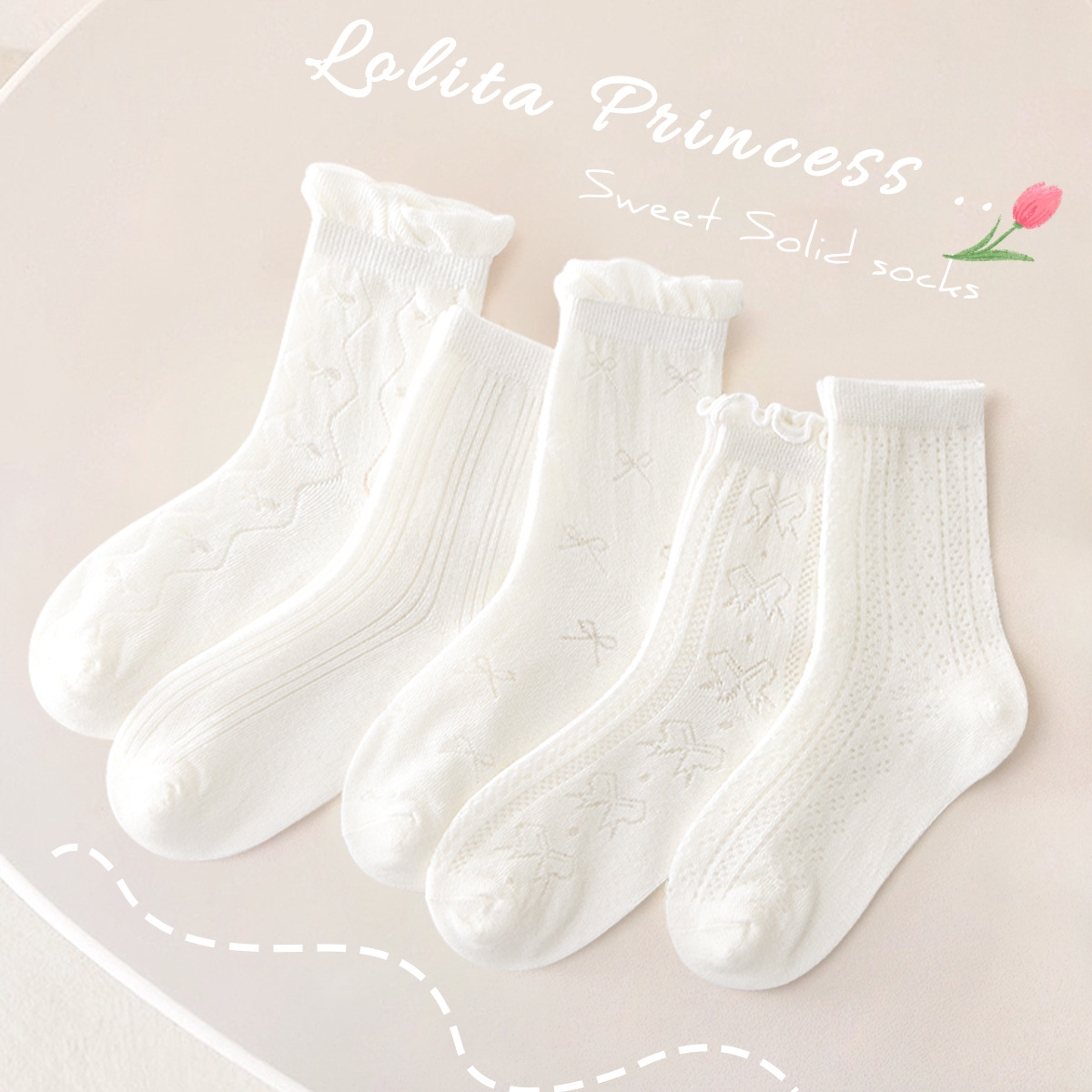2025 소녀 양말 봄과 여름 얇은 어린이 양말 양말을 통해 메쉬 순수한 흰색 레이스 소녀 튜브 양말