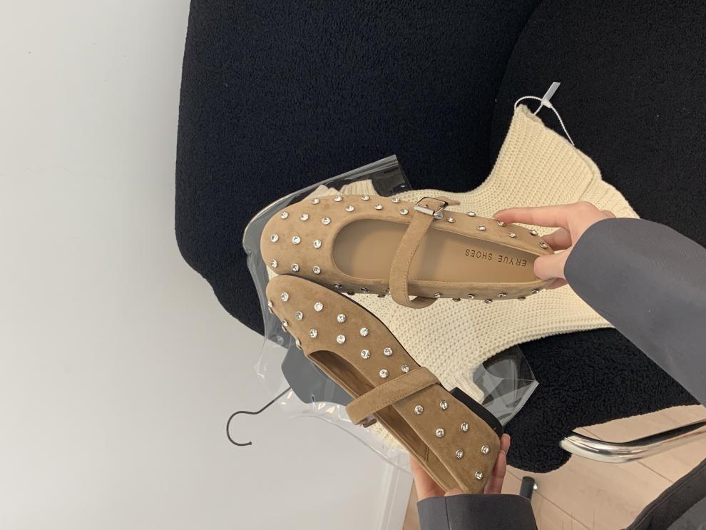 法式圆头浅口铆钉单鞋2025春新款一字扣平底鞋스토어 가기