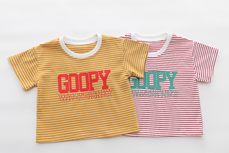국경 간 아동복 여름 도매 0-5 세 줄무늬 반팔 티셔츠 반바지 2 세트 남녀 아기 옷 여름 옷스토어 가기