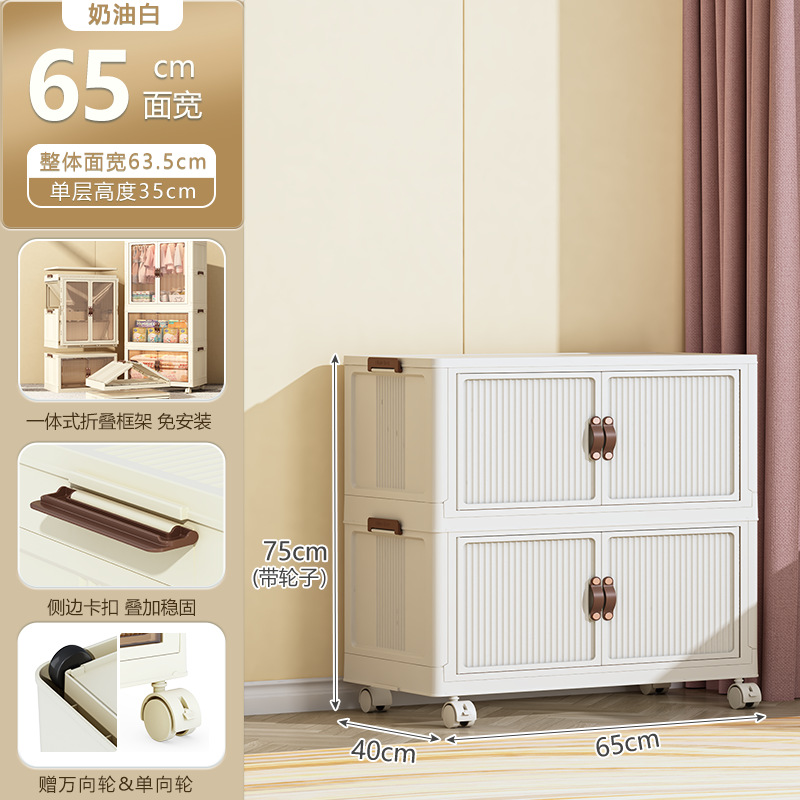 • 폭 65CM - 2단 옷장 + 1단 수납함 - 크림화이트 [행거 10개 무료]