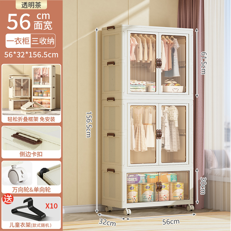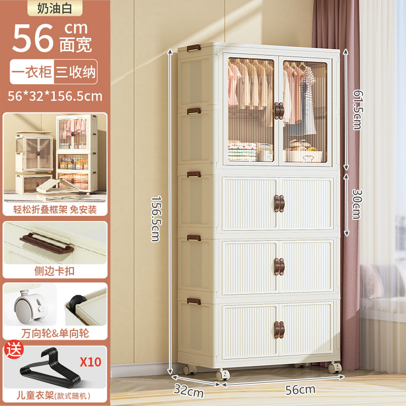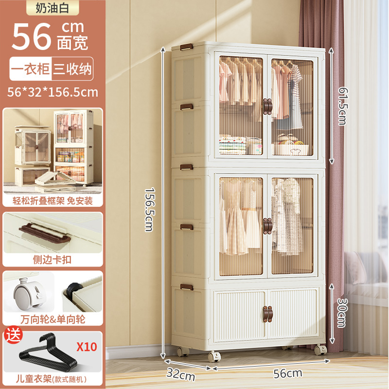 • 폭 56CM - 1단 옷장 + 1단 수납함 [옷걸이 10개 무료]