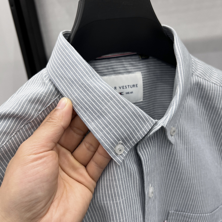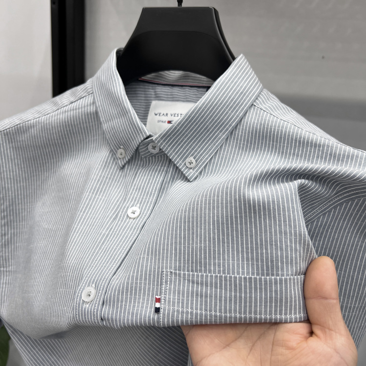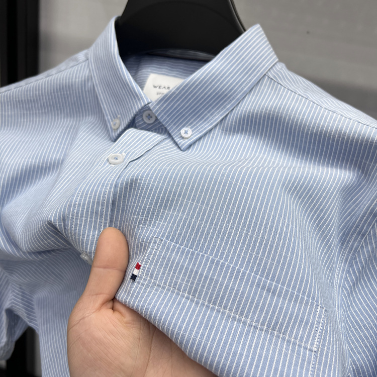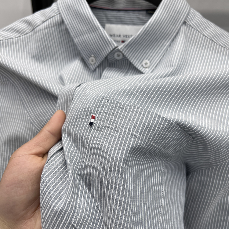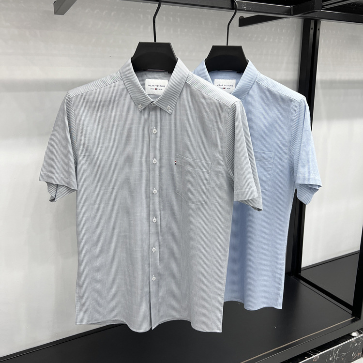 정품 토미 짧은 소매 셔츠 남자의 2024 여름 얇은 패션 비즈니스 스트라이프 중년 셔츠스토어 가기