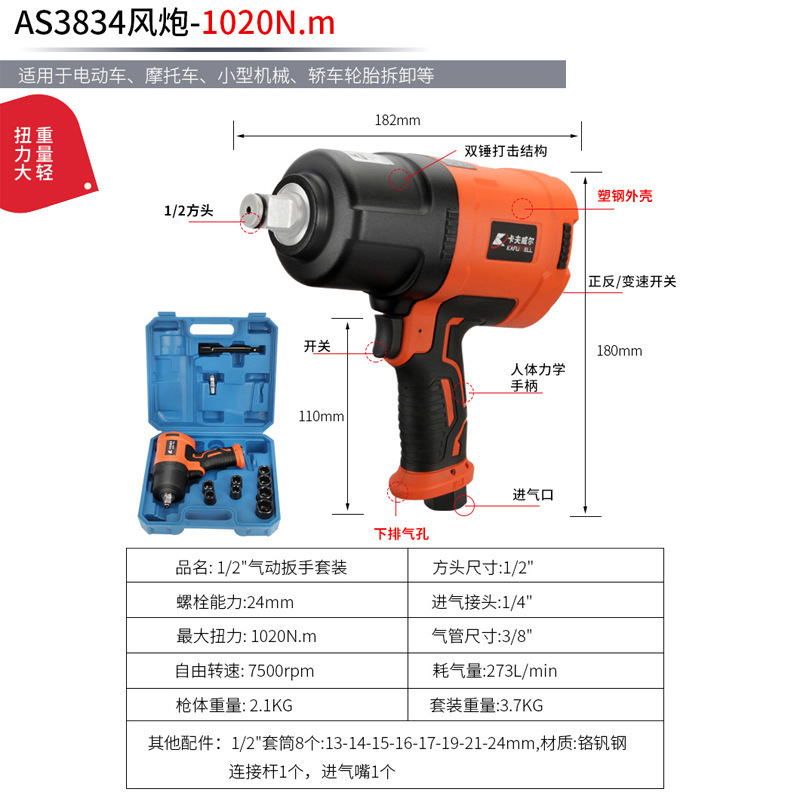 • AS3834 1/2" 공압 렌치 세트 1020N.m