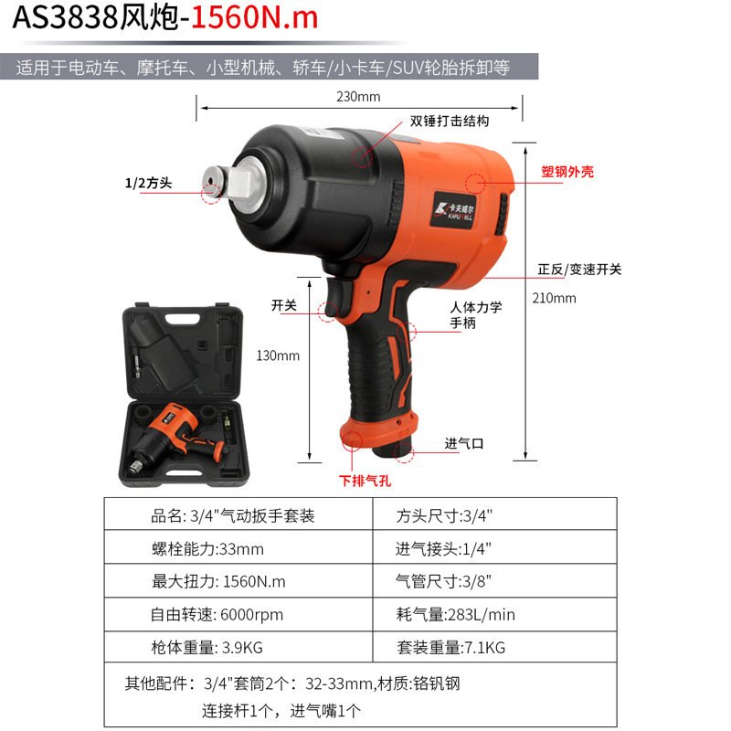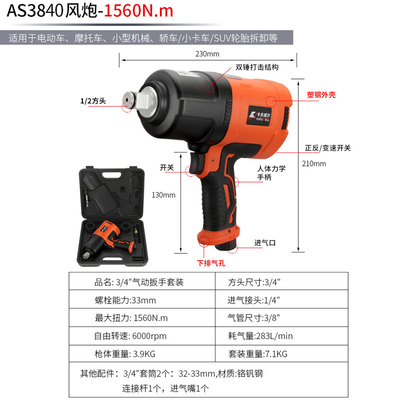 • AS3840 3/4" 공압 렌치 세트 1560N.m