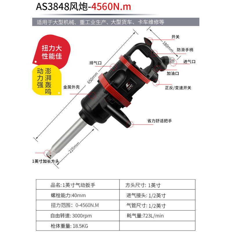 • AS3845 1" 공압 렌치, 확장 2880N.m