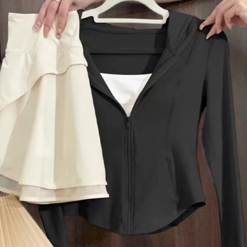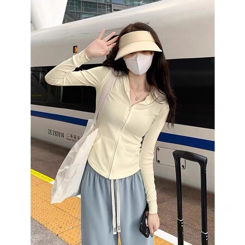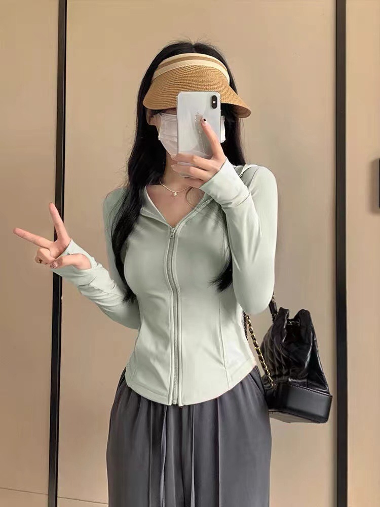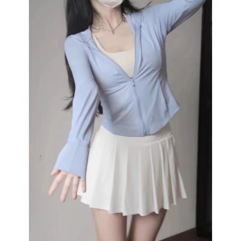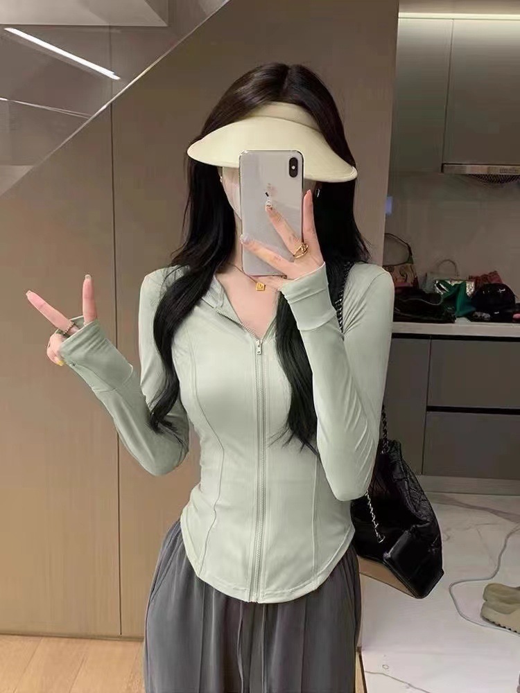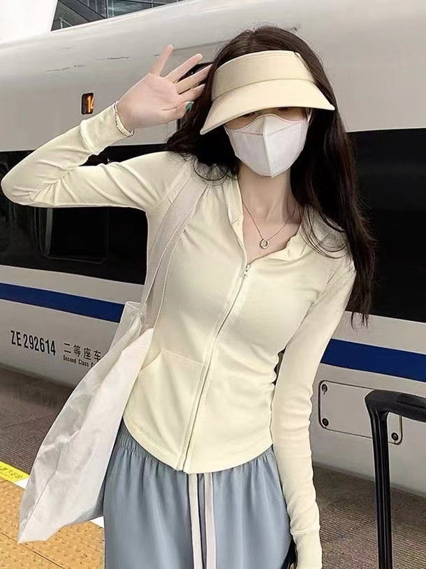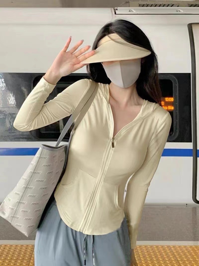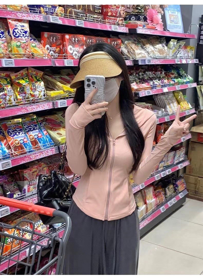 아이스 실크 슬림 핏 썬 보호 의류 여성 여름 새로운 보라색 카디건 요가 태양 보호 의류 얇은 코트 카디건 쇼트 탑스토어 가기