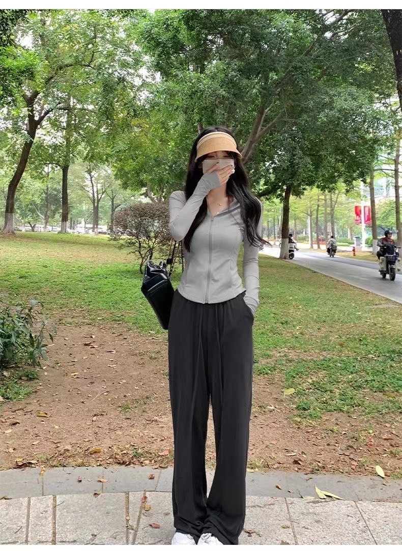 아이스 실크 슬림 핏 썬 보호 의류 여성 여름 새로운 보라색 카디건 요가 태양 보호 의류 얇은 코트 카디건 쇼트 탑