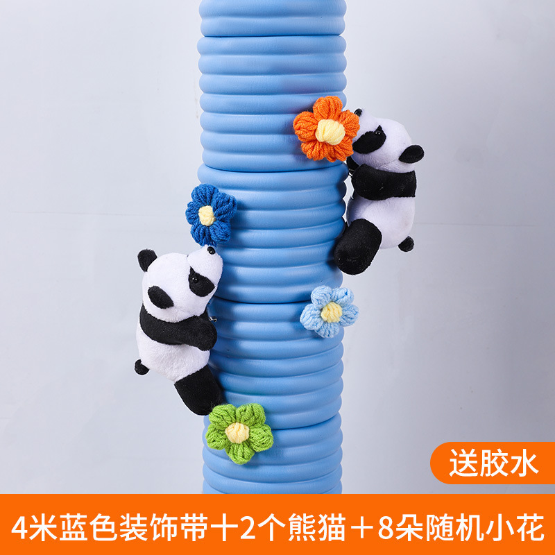• 파란색 장식 리본 4m개 + 팬더 2개 + 무작위 꽃 16개 [무료 접착제]