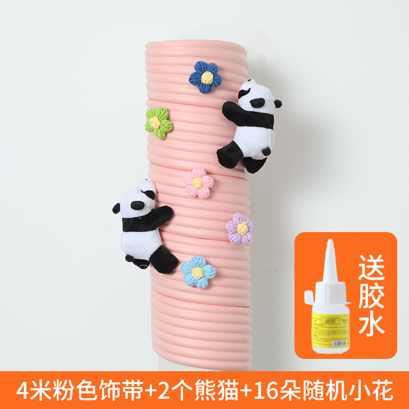 • 핑크 장식 리본 4m개 + 팬더 2개 + 임의의 작은 꽃 16개 [무료 접착제]