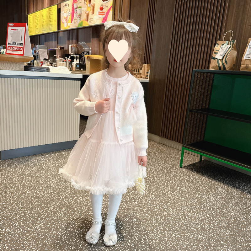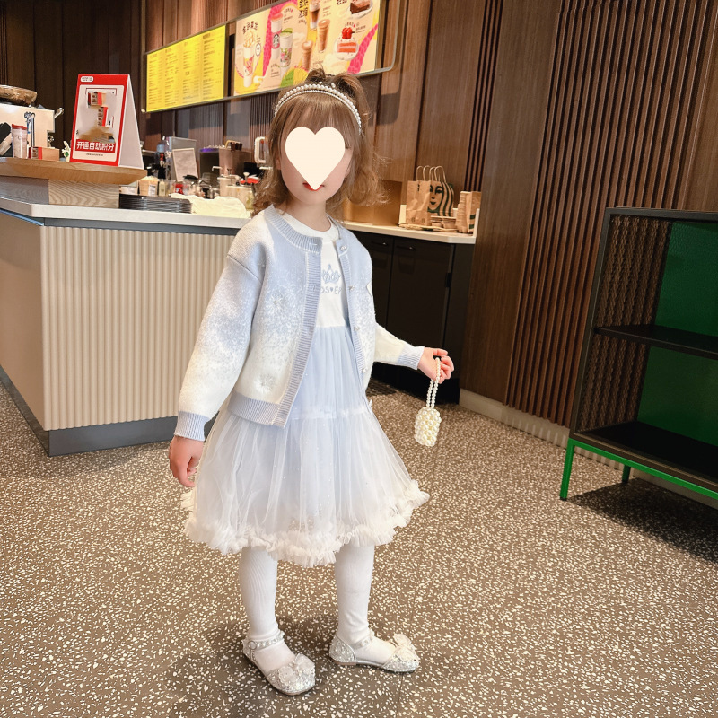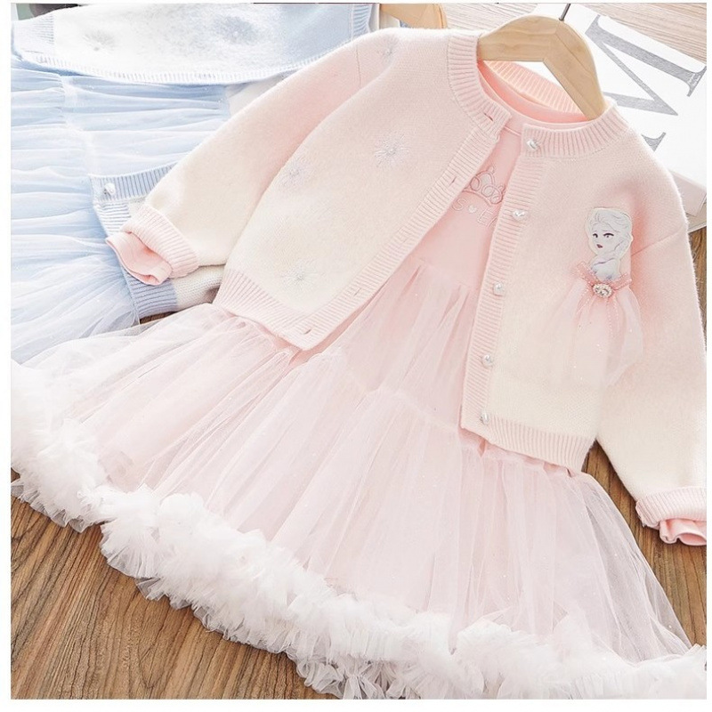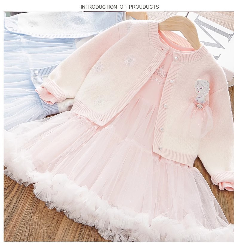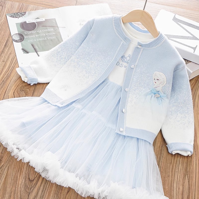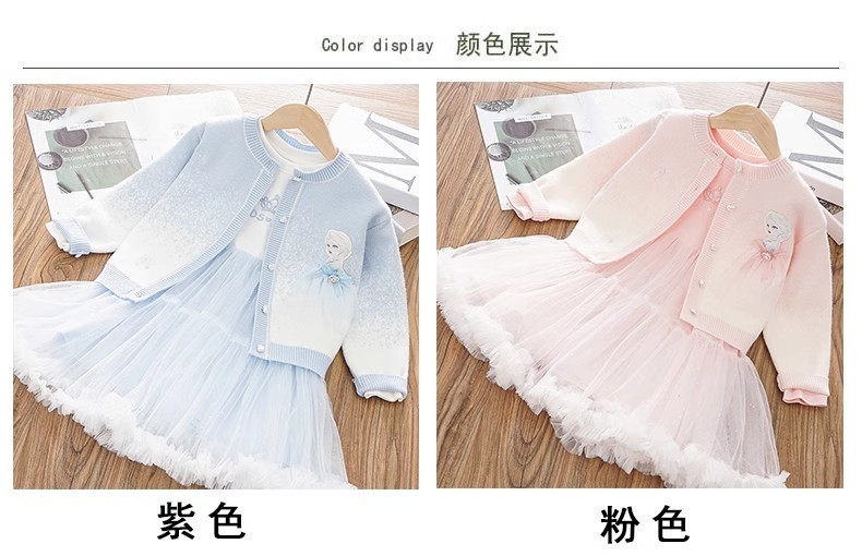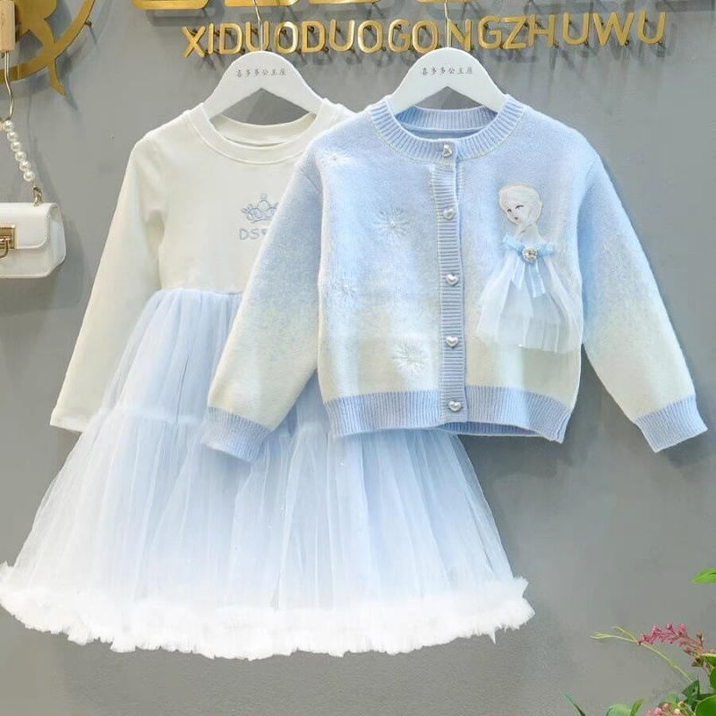 소녀 2024 봄과 가을 새로운 원피스 세트 어린이 냉동 공주 아이샤 원피스 스웨터 투피스 세트스토어 가기