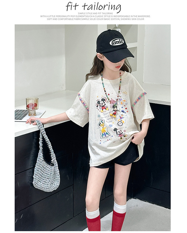 여자 여름 반팔 티셔츠 2025 여름 새로운 중대형 어린이 만화 옷 여자 여름 옷 유행 아동 의류 유행 t스토어 가기
