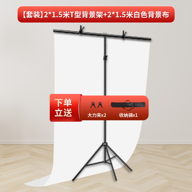 • [세트] 2* 1.5m T 프레임 + 2* 1.5m 흰색 배경 천(강력한 클립 2개 보내기) -0x0m