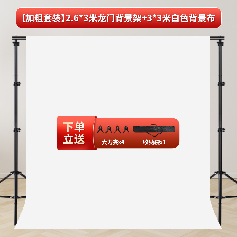 • [굵은 세트] 2.6* 3m 갠트리 + 3* 3m 흰색 배경 천(대형 클립 4개 포함)-0x0m