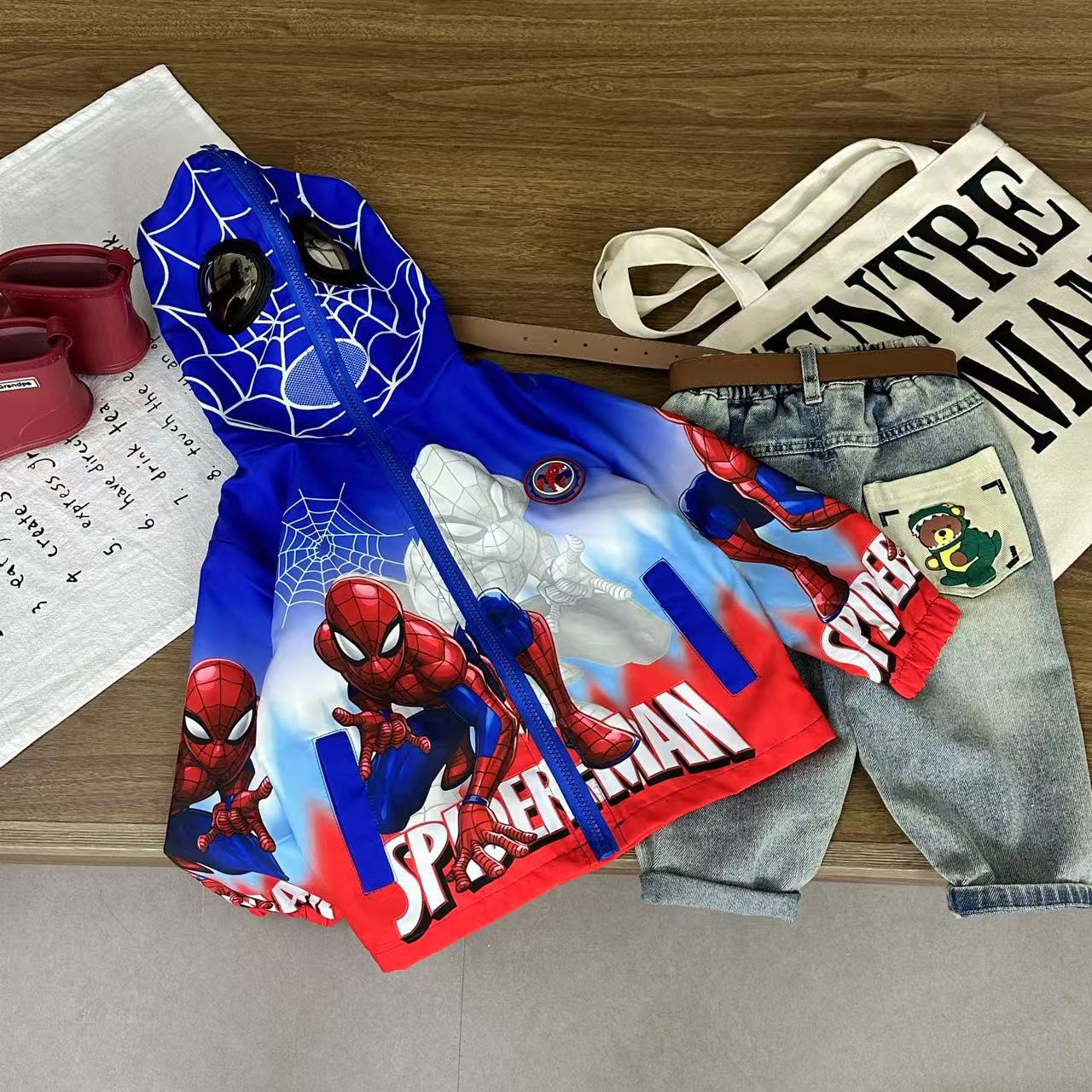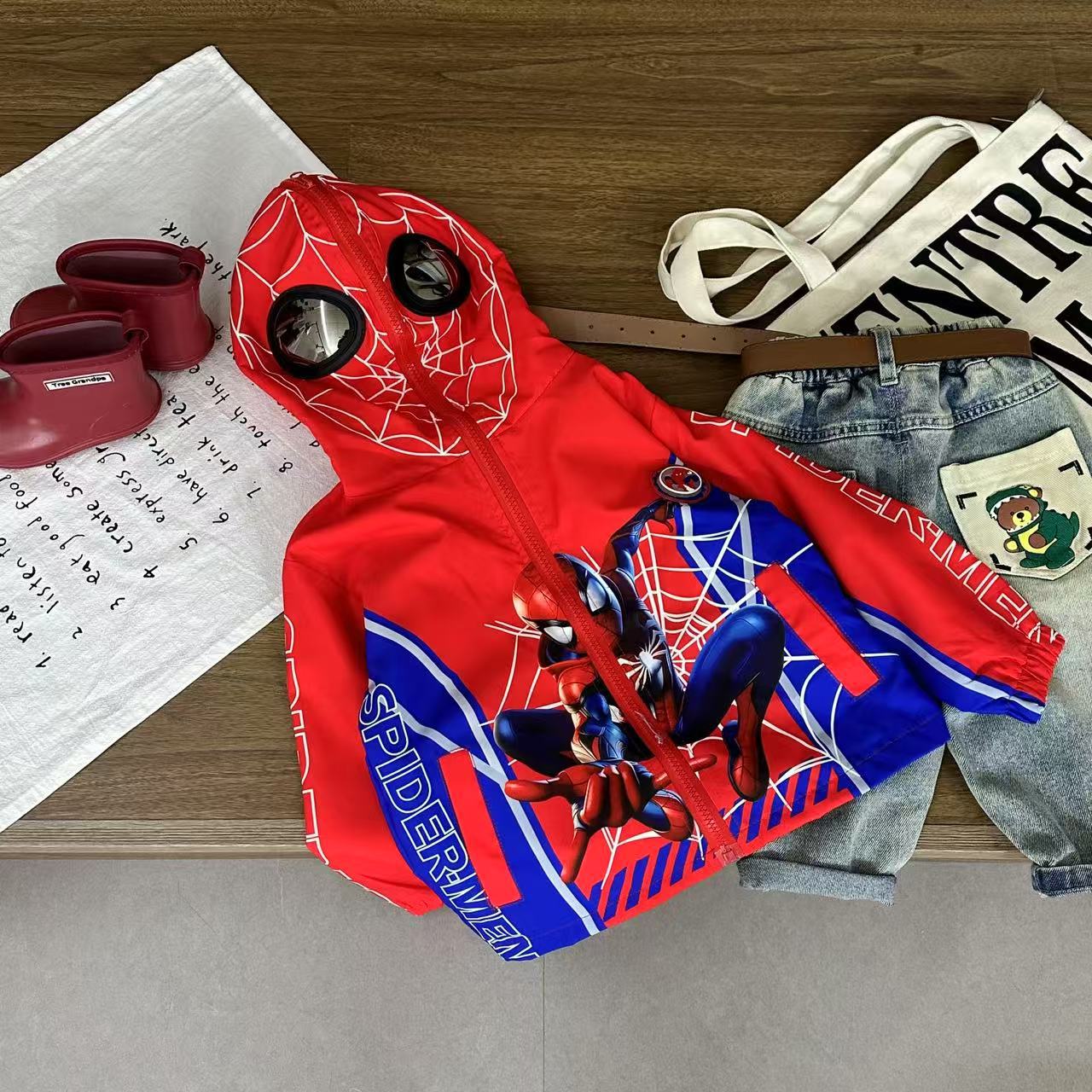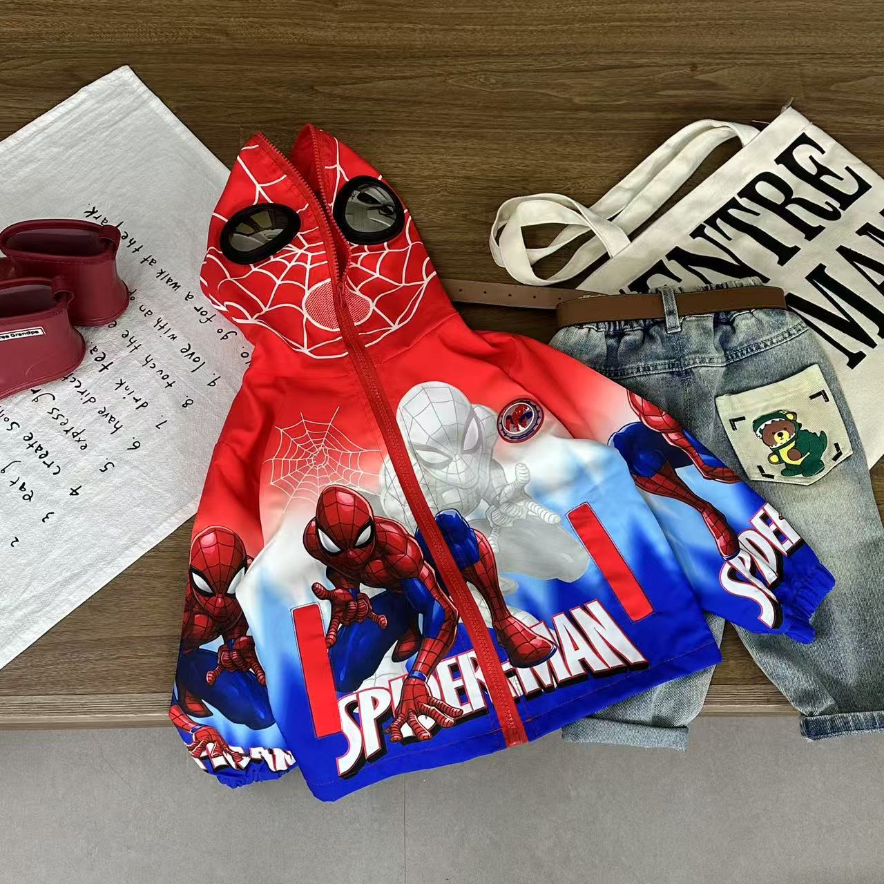 소년의 봄 스파이더 맨 라이트 업 충전 재킷 중년 아기 방풍 재킷 가을 후드 지퍼 코트