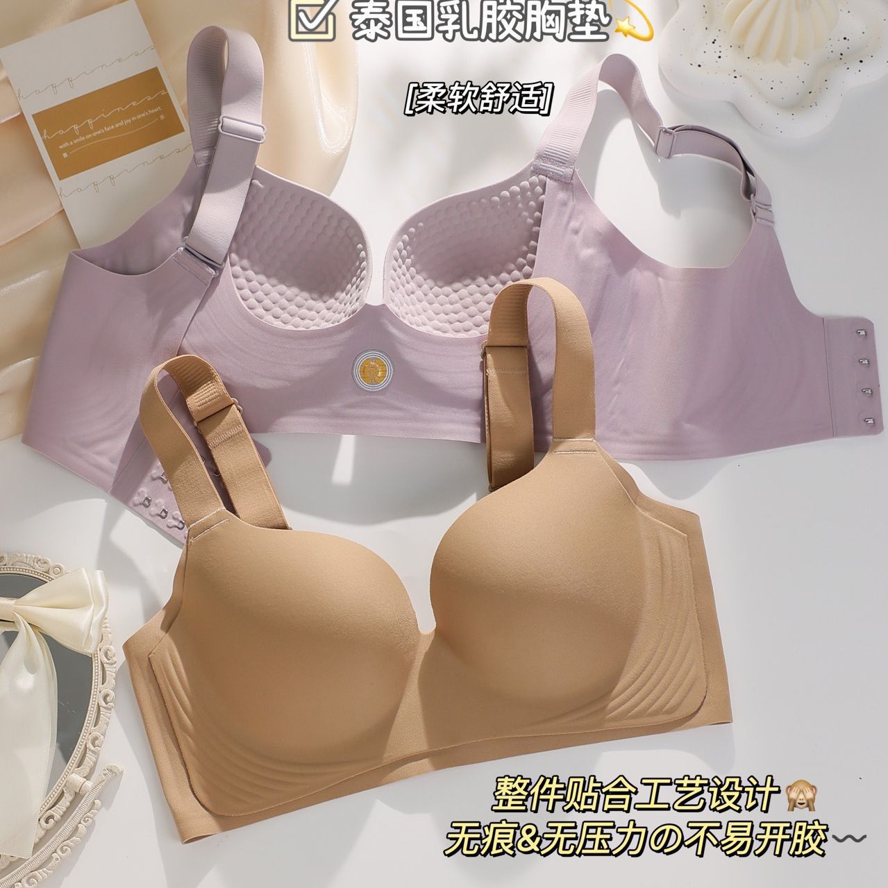 원래 큰 가슴은 작은 얇은 브래지어 라텍스 비 스틸 링 클로저 파라머 속옷 여성의 tracless 푸시 업 플러스 사이즈 브래지어를 보여줍니다.