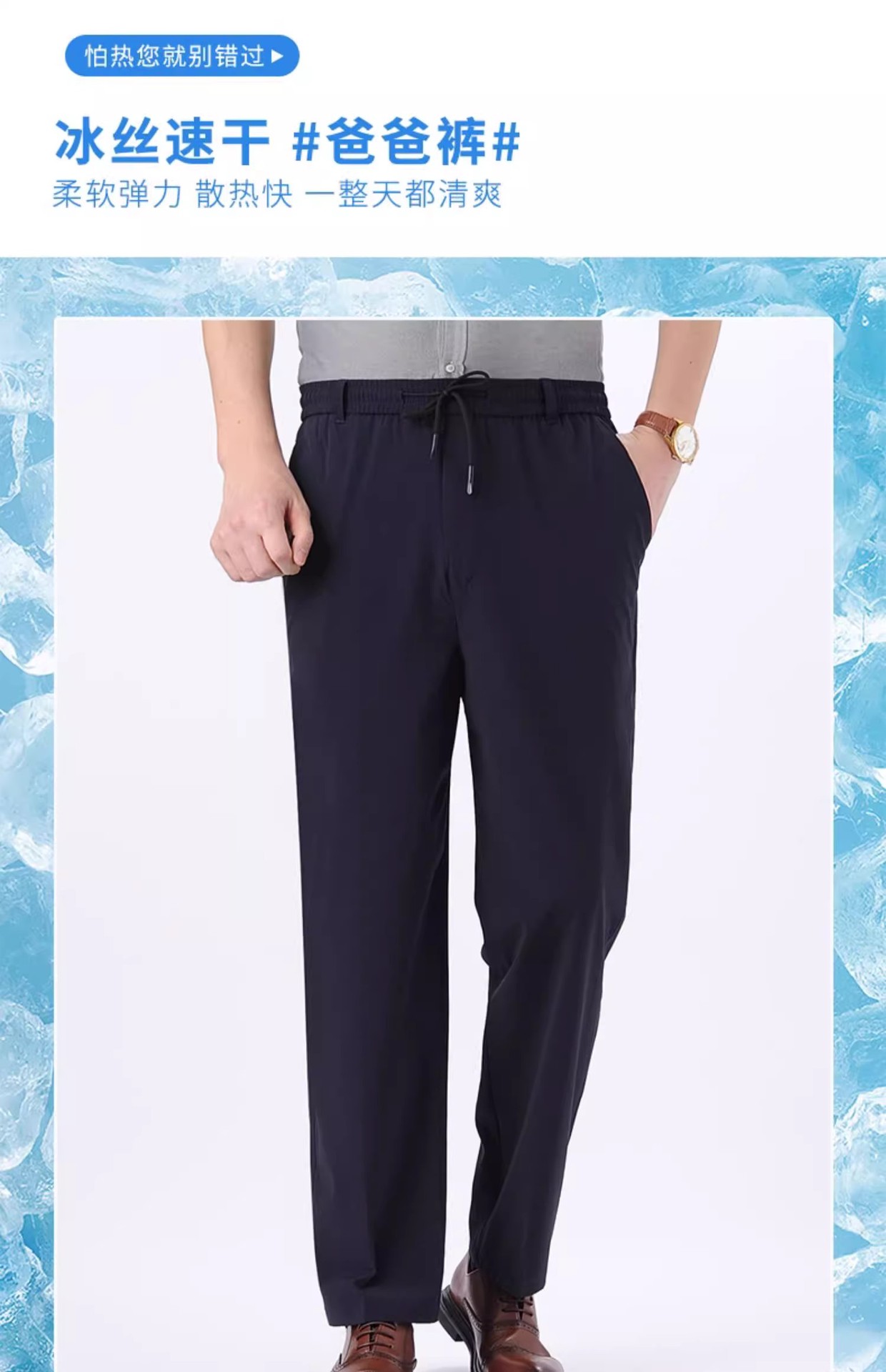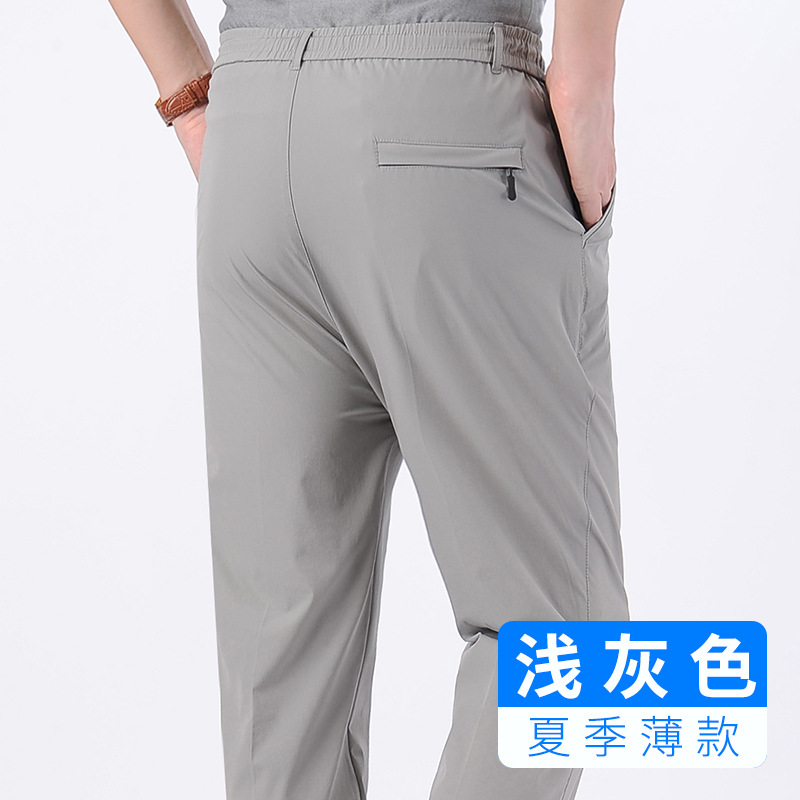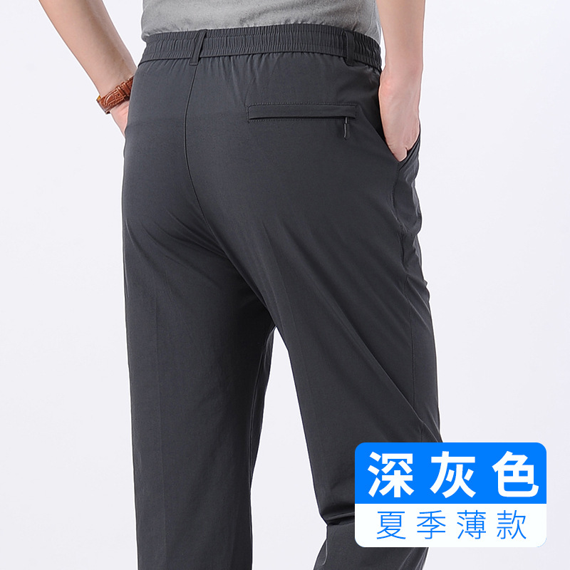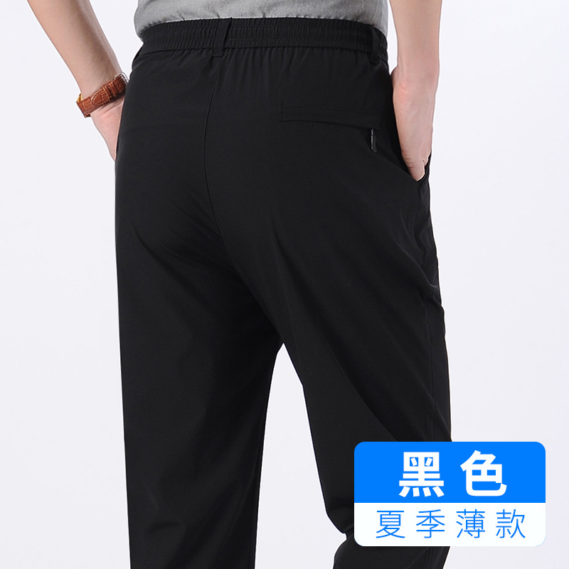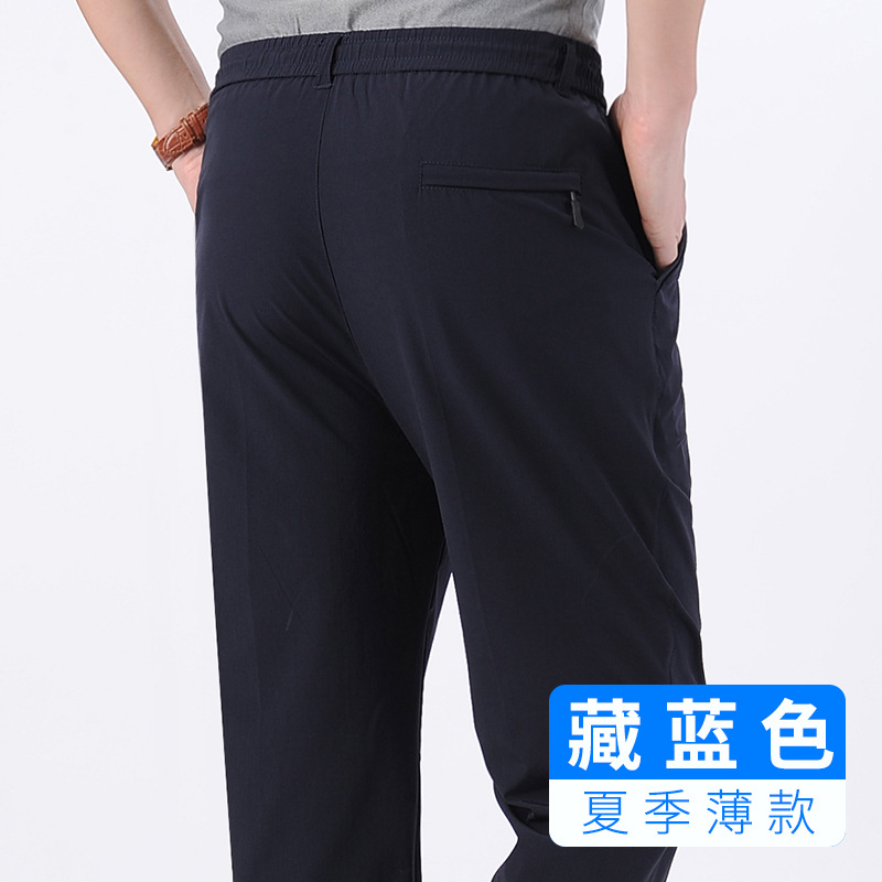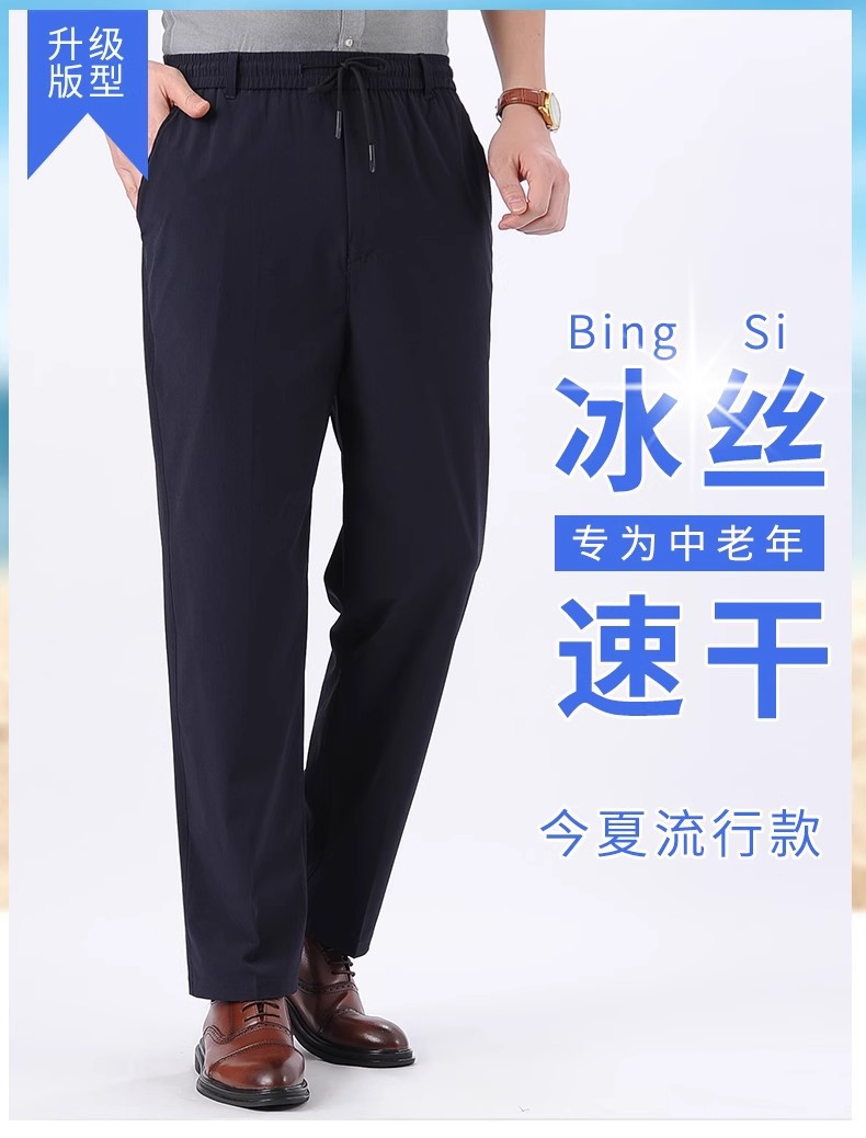 아이스 실크 빠른 건조 바지 여름 얇은 중년 남성 캐주얼 탄성 허리 스포츠 바지 느슨한 탄성 남성용 바지스토어 가기