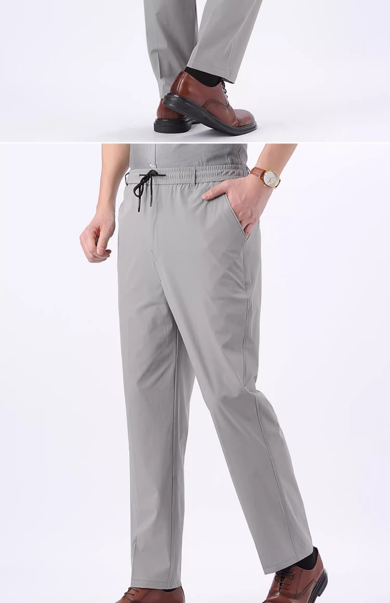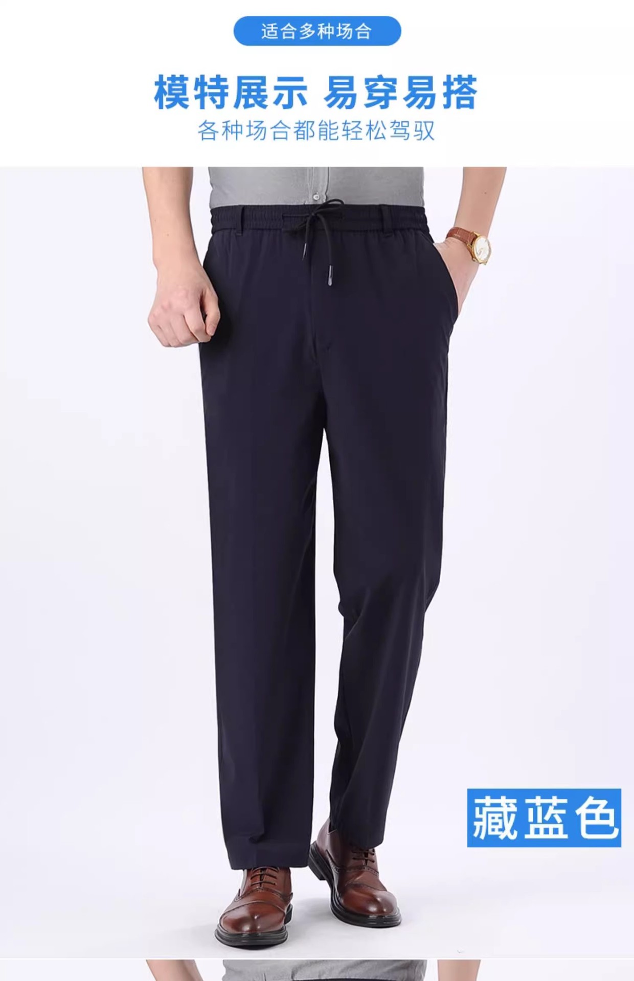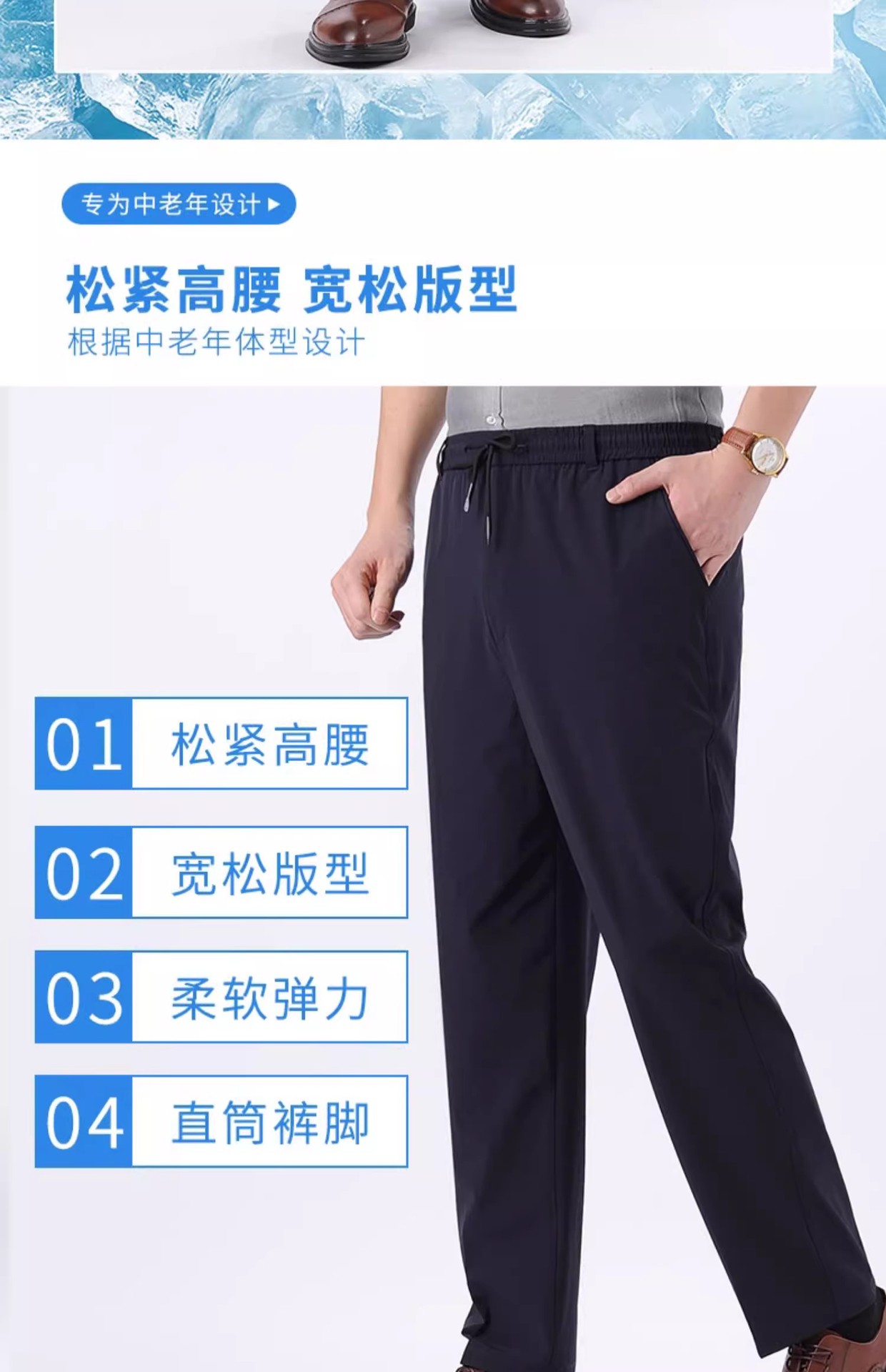 아이스 실크 빠른 건조 바지 여름 얇은 중년 남성 캐주얼 탄성 허리 스포츠 바지 느슨한 탄성 남성용 바지스토어 가기